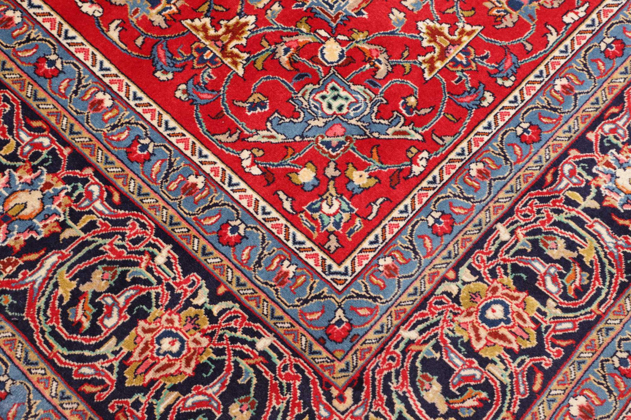 Dette teppet består av håndspunnet saueull av høyeste kvalitet. Spesielt i Iran (tidligere Persia), Afghanistan og Pakistan blir ull spunnet for hånd før teppet faktisk er knyttet. Ull har bevist seg som et naturlig og ekstremt slitesterkt materiale gjennom århundrer. Blant annet har den smussavvisende og varmeisolerende egenskaper. Samtidig er ull uten sammenligning myk og fører med seg en naturlig glans.