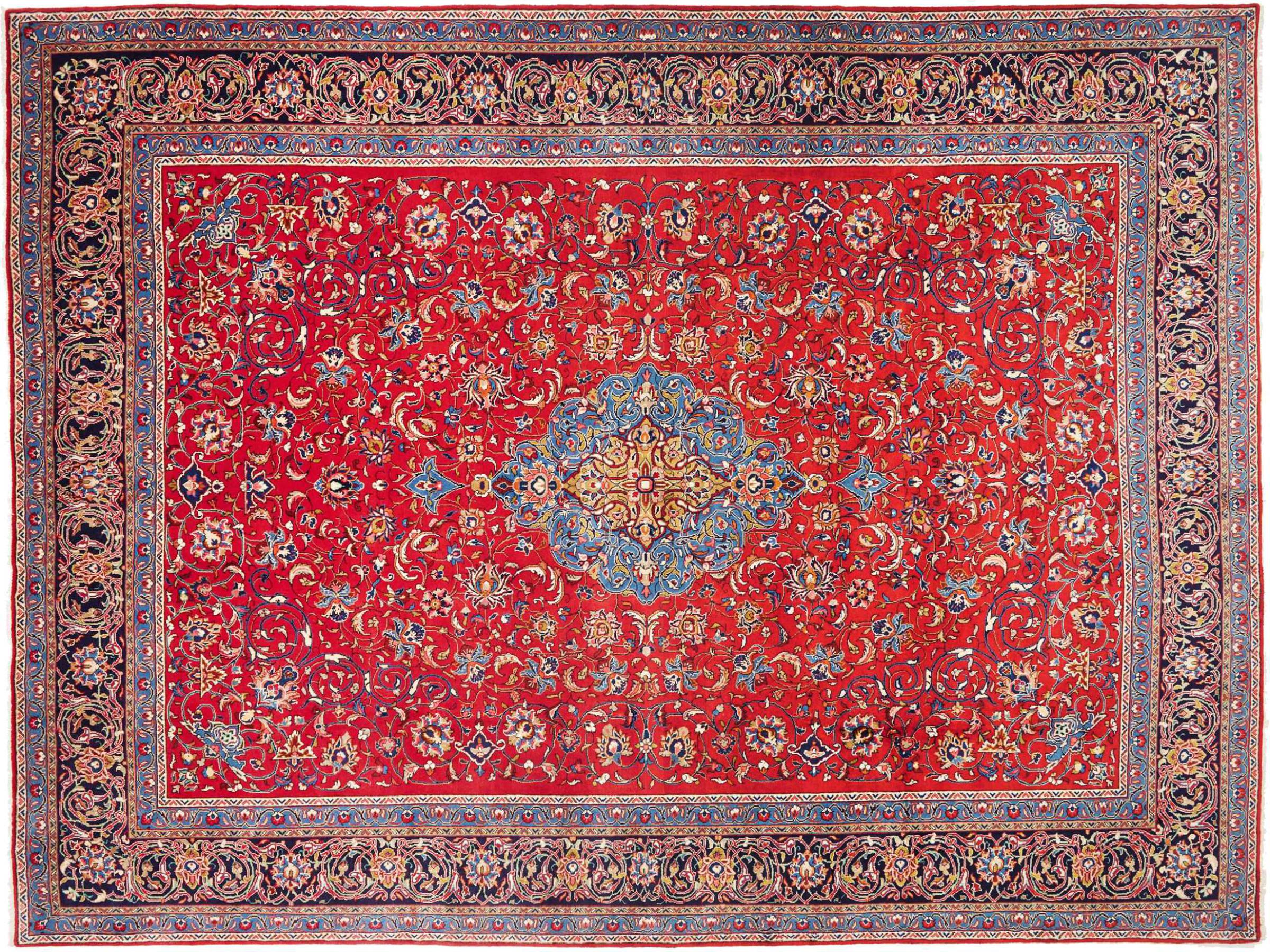 Dette teppet ble håndknyttet i Sarough. Her blir det produsert tunge tepper av høy kvalitet. takket være det flotte mønsteret passer det inn i ditt hjem.
