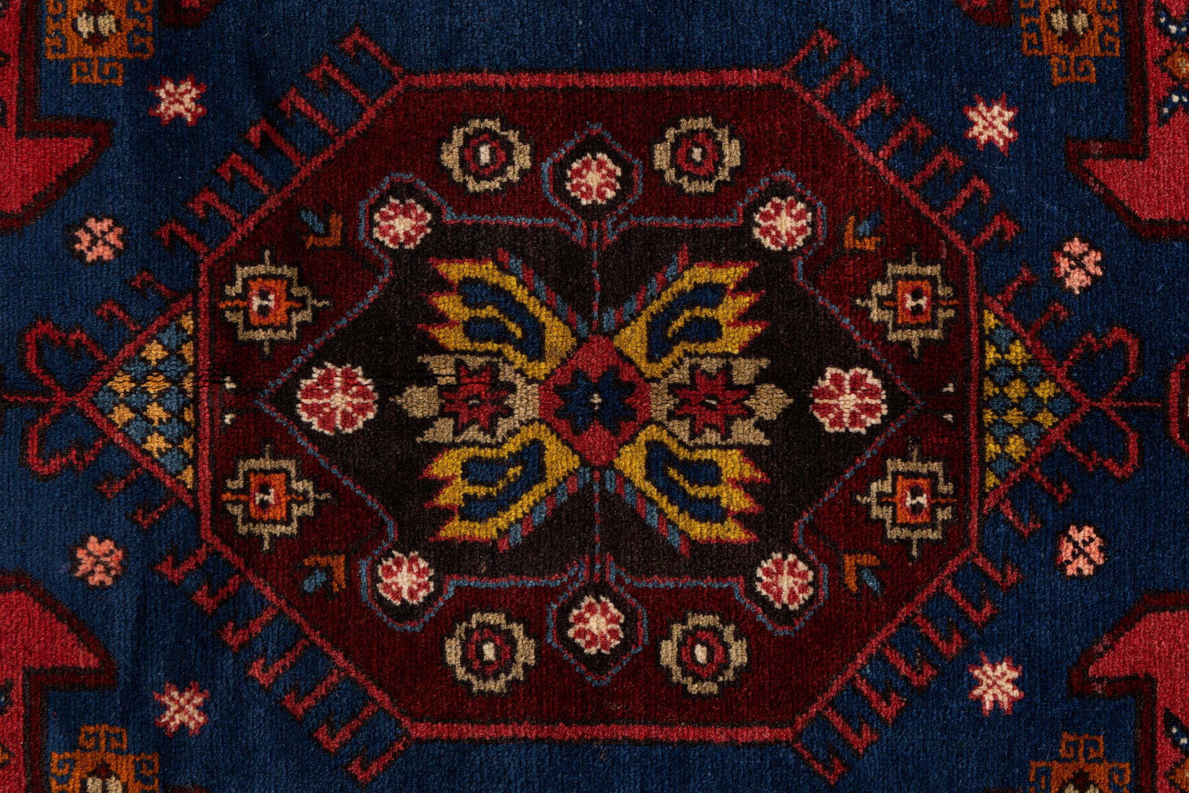 Teppenummer: 29891700686 Størrelse: 200x125 cm Tykkelse: ca. 12 mm Knuter: 320 000 - 350 000 / m² Bearbeiding: Knyttet for hånd Søm: Håndspunnet Ull Kjede: Bomull Opprinnelse: Azerbaijan / Russland Alder: Gammelt/halv-antikt, eldre enn 50 år Vekt: ca. 8 kg Også kjent som Afghan Shirvan, Kaukasisch Antall på lager: Unikt - Kun 1 stk i lager