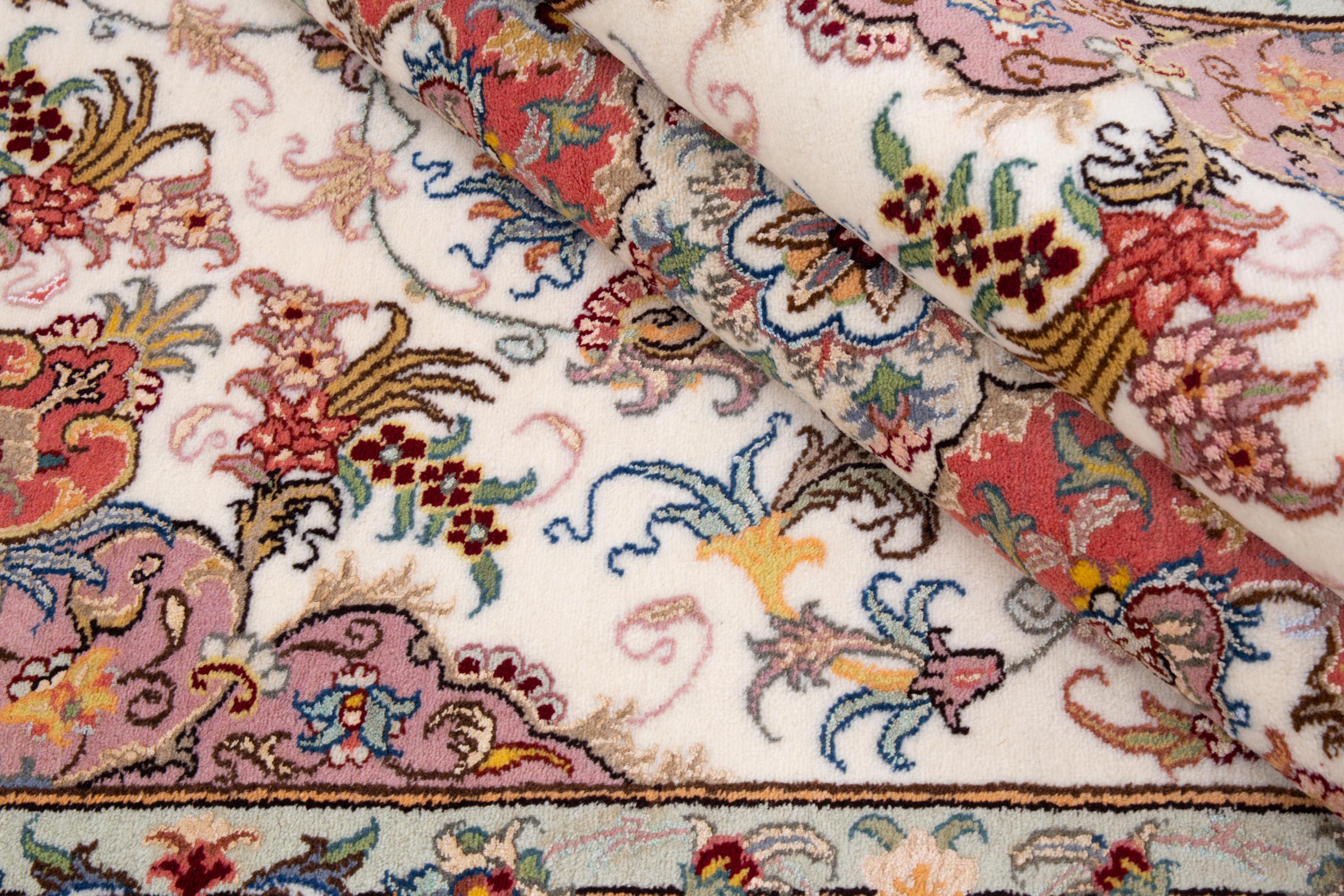 Teppenummer: 293152007117167 Størrelse: 283x194 cm Tykkelse: ca. 10 mm Knuter: 200 000 - 250 000 / m² Bearbeiding: Knyttet for hånd Søm: Ull med silke Kjede: Bomull Opprinnelse: Persia / Iran Alder: Nytt Vekt: ca. 19 kg Også kjent som Tabris, Tabriz, Tebris, Tebriz, Täbris, Village Antall på lager: Unikt - Kun 1 stk i lager