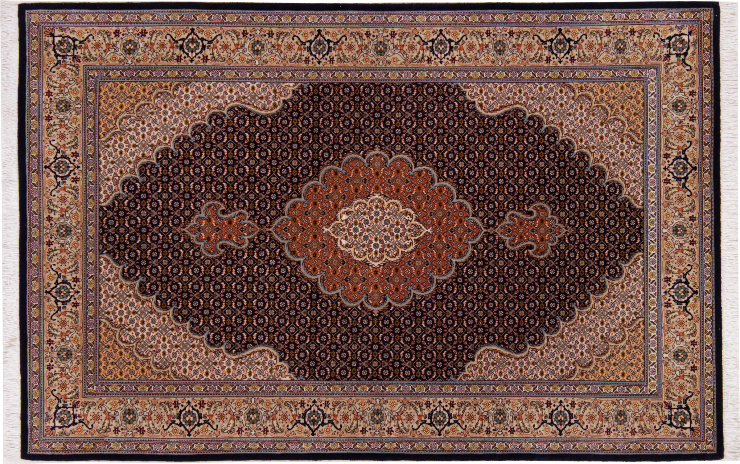 Teppenummer: 292513009446876 Størrelse: 159x102 cm Tykkelse: ca. 7 mm Knuter: 440 000 - 490 000 / m² Bearbeiding: Knyttet for hånd Søm: Ull med silke Kjede: Bomull Opprinnelse: Persia / Iran Alder: Nytt Vekt: ca. 5 kg Også kjent som Tabriz, Tabris, Täbris, Tebriz, Tebris, 40Raj, 50Raj Antall på lager: Unikt - Kun 1 stk i lager