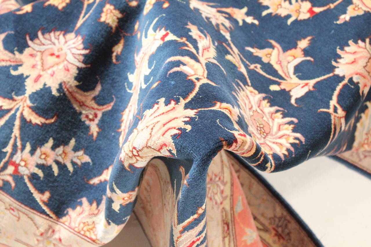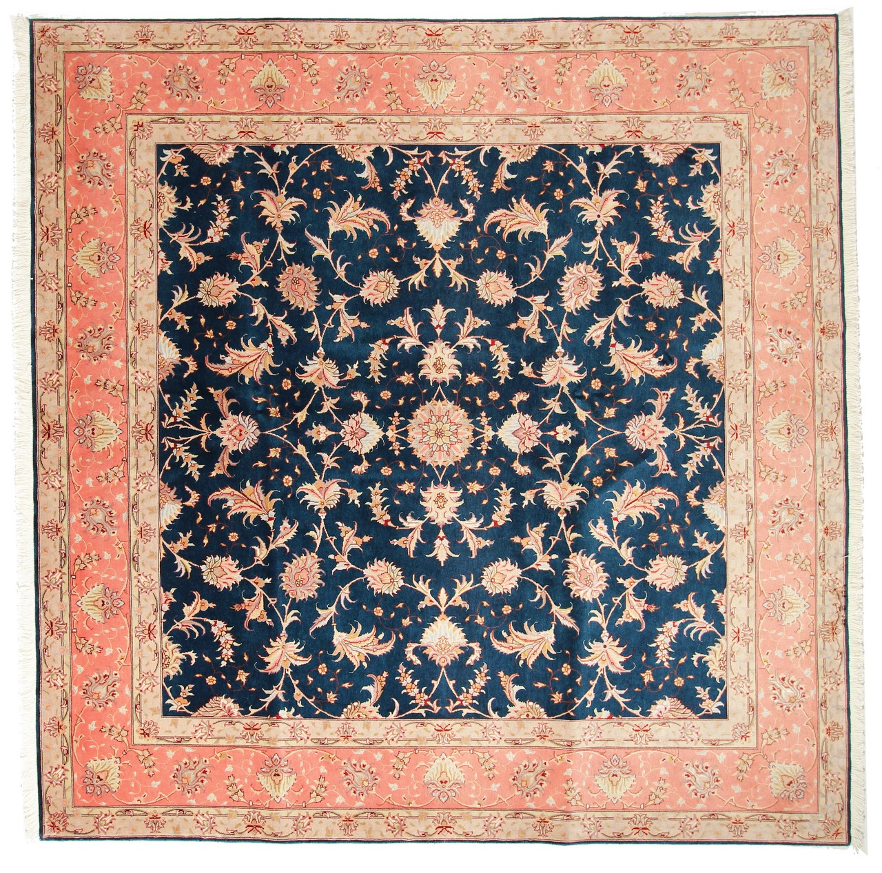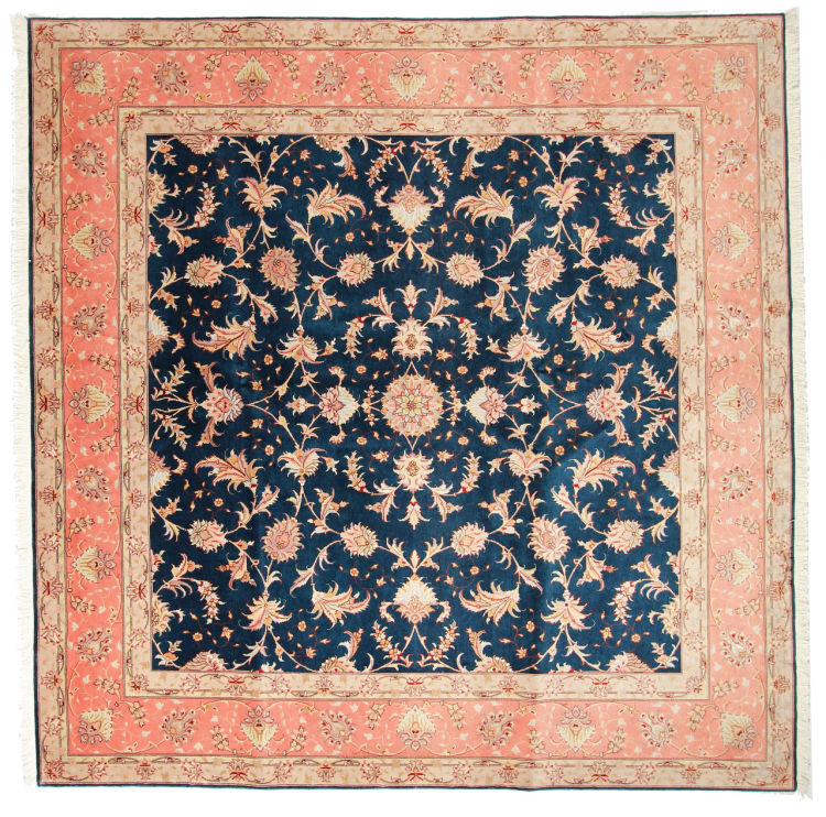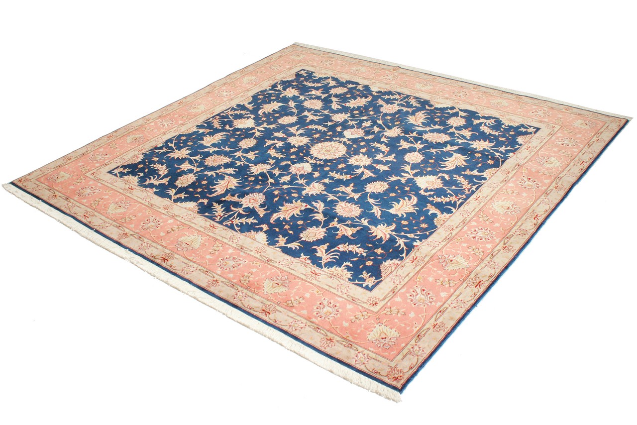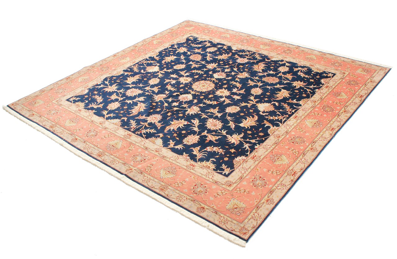 Teppenummer: 69030026593 Størrelse: 200x202 cm Tykkelse: ca. 7 mm Knuter: 450 000 - 500 000 / m² Bearbeiding: Knyttet for hånd Søm: Ull med silke Kjede: Bomull Opprinnelse: Persia / Iran Alder: Nytt Vekt: ca. 12 kg Også kjent som Tabriz, Tabris, Täbris, Tebriz, Tebris, 40Raj, 50Raj Antall på lager: Unikt - Kun 1 stk i lager
