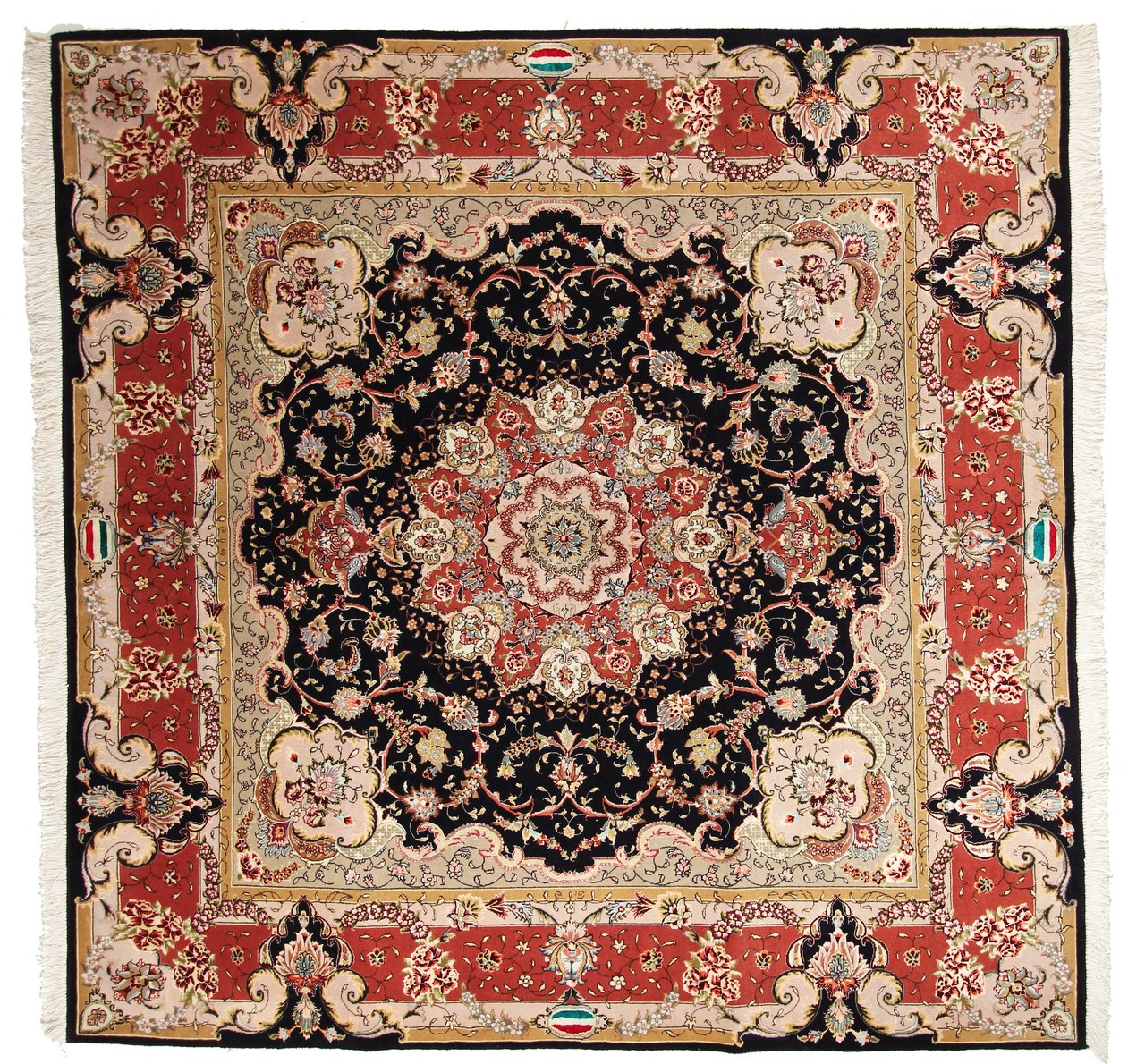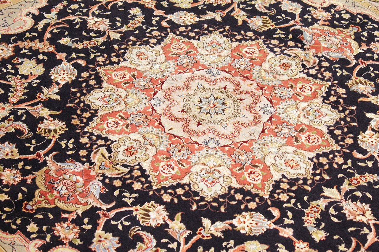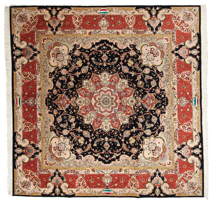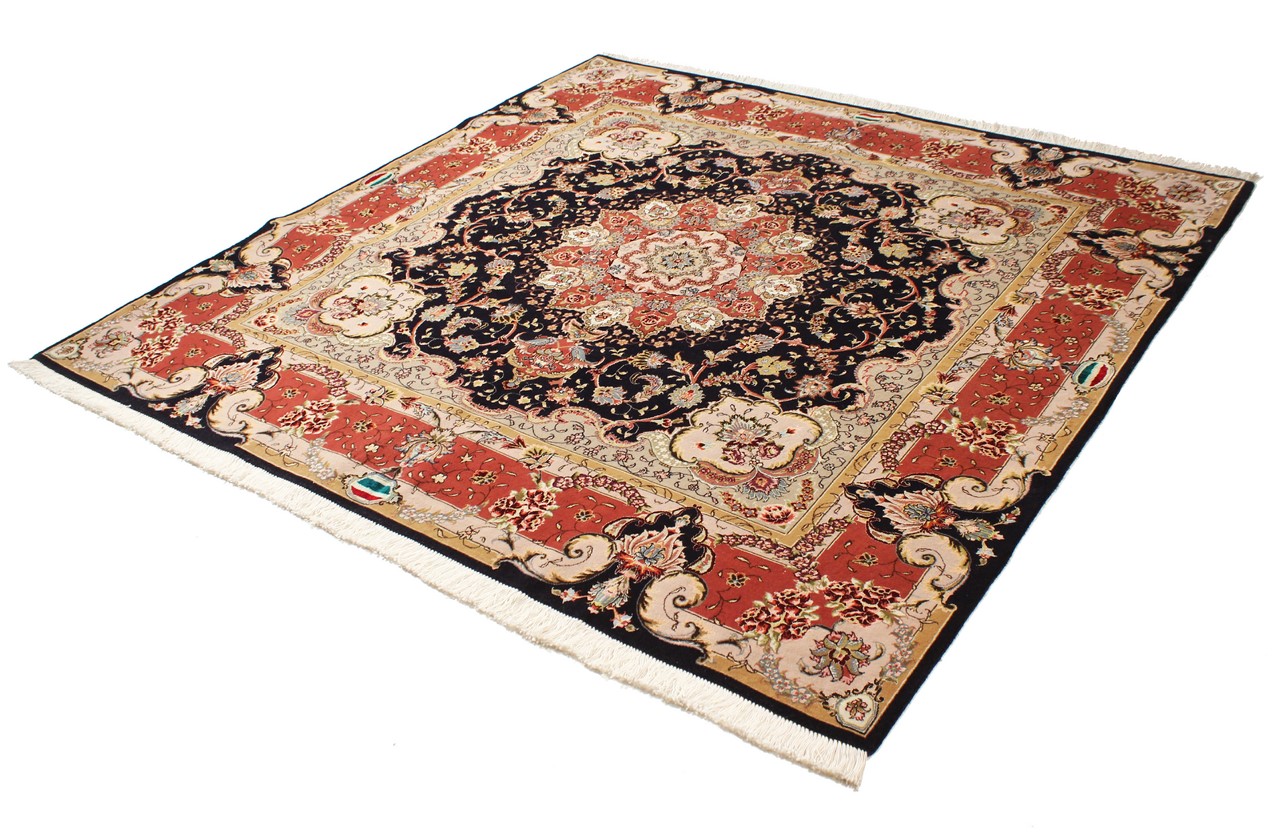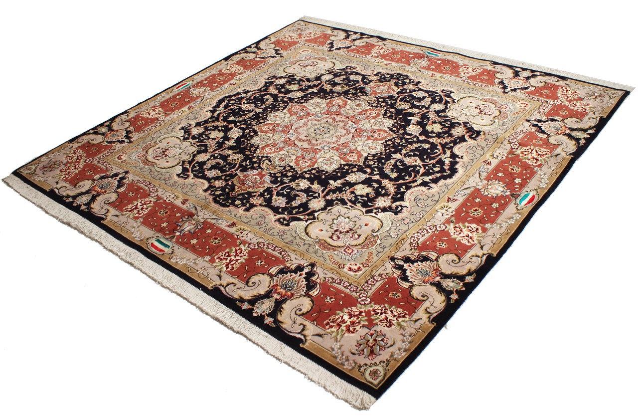Teppenummer: 75070018098 Størrelse: 202x203 cm Tykkelse: ca. 7 mm Knuter: 450 000 - 500 000 / m² Bearbeiding: Knyttet for hånd Søm: Håndspunnet Ull Kjede: Bomull Opprinnelse: Persia / Iran Alder: Nytt Vekt: ca. 12 kg Også kjent som Tabriz, Tabris, Täbris, Tebriz, Tebris, 40Raj, 50Raj Antall på lager: Unikt - Kun 1 stk i lager