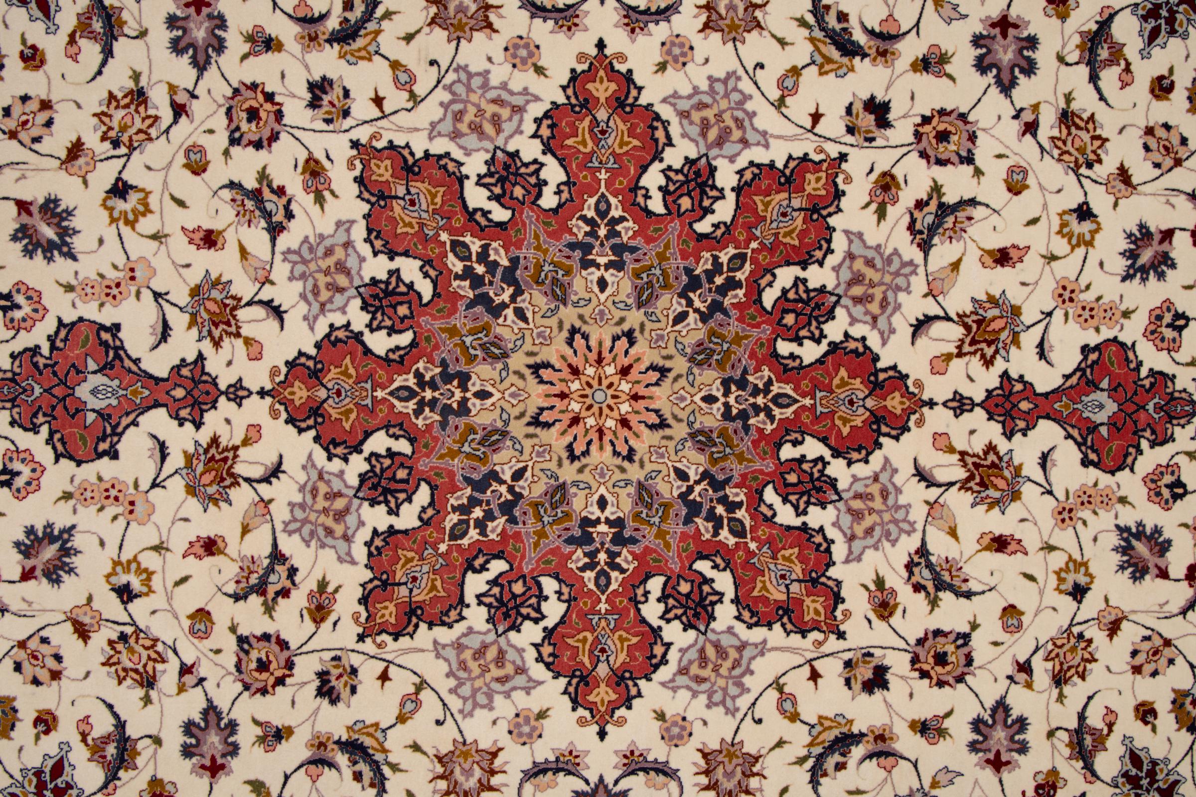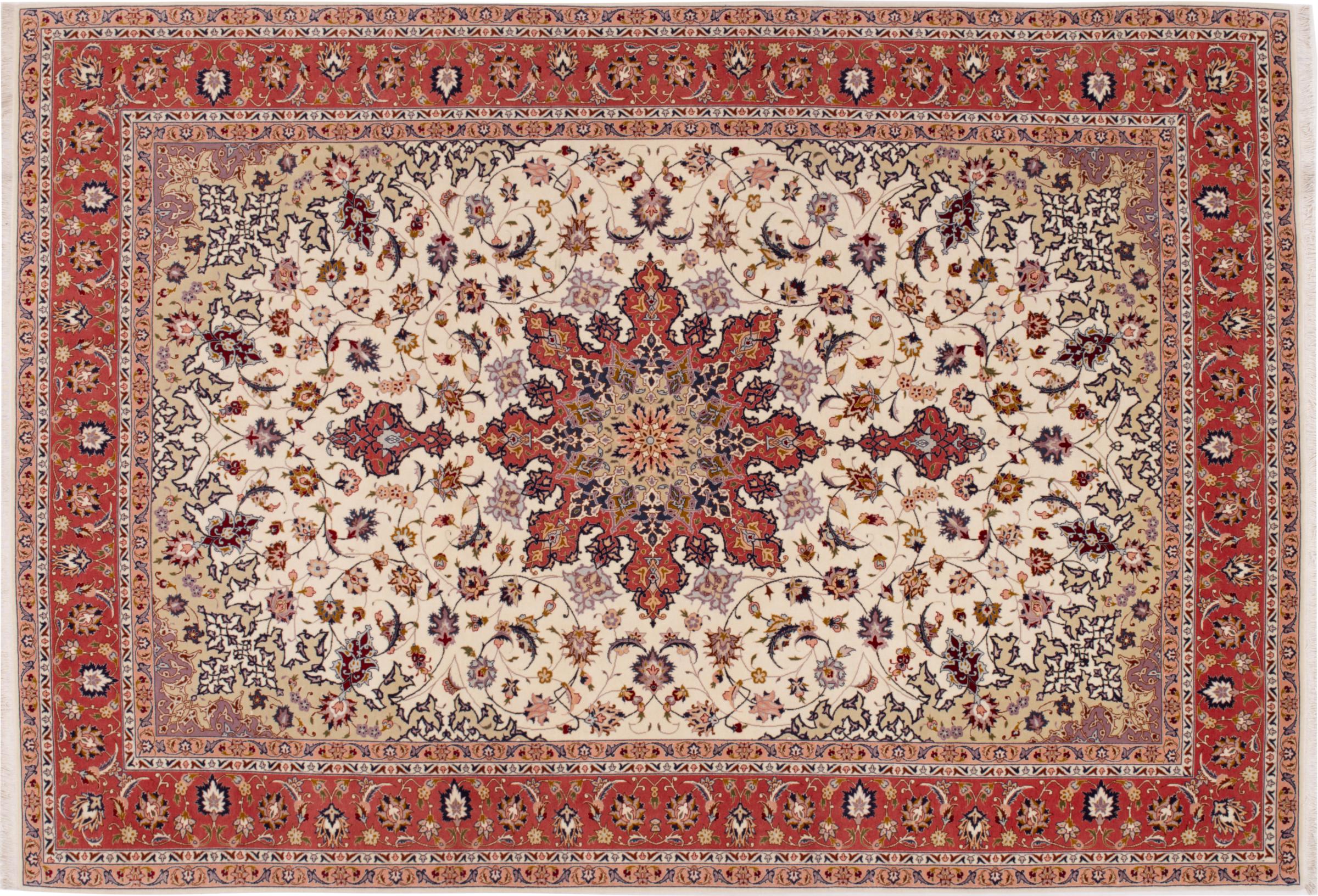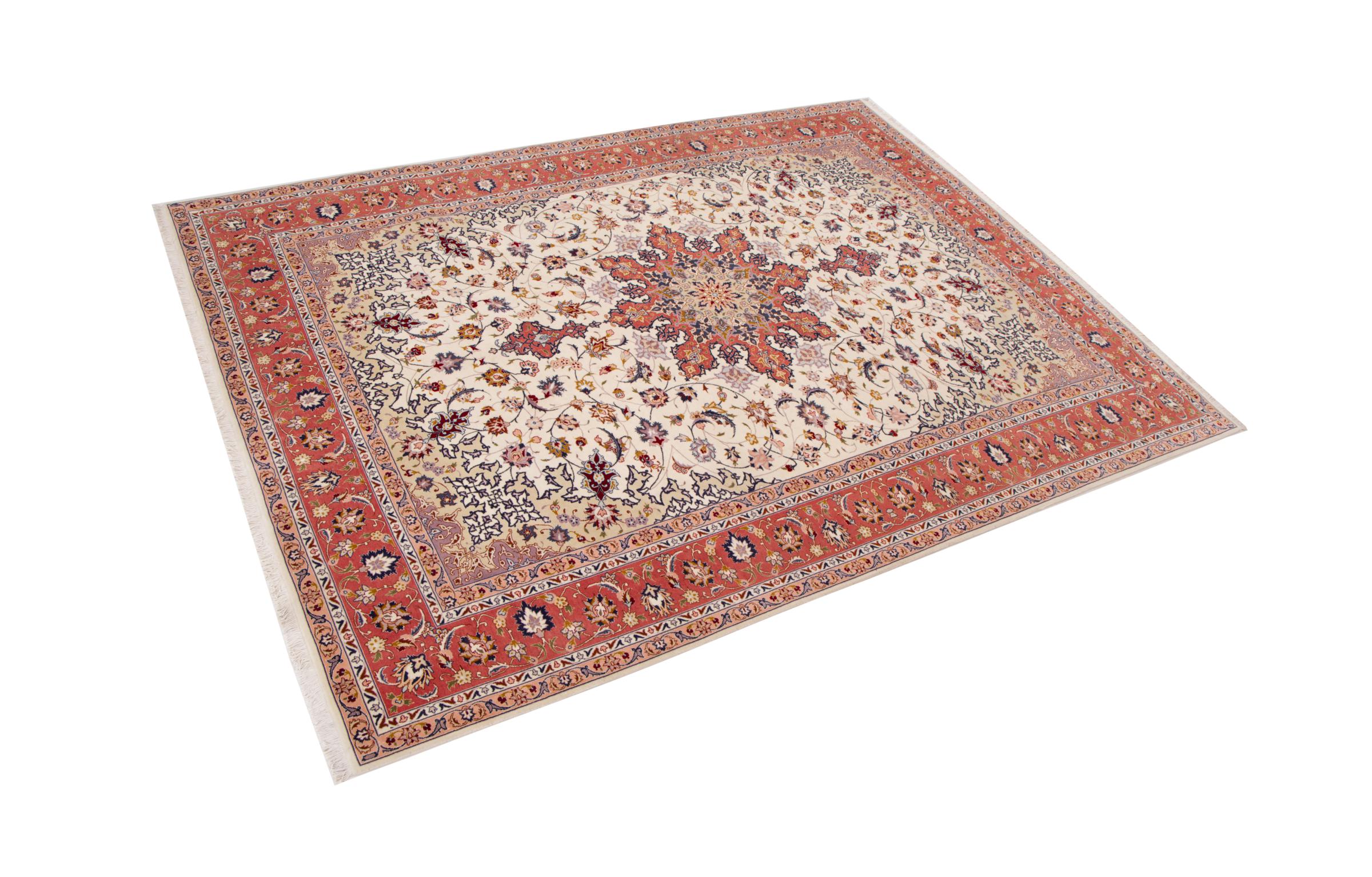 Teppenummer: 293113001122875 Størrelse: 296x201 cm Tykkelse: ca. 7 mm Knuter: 440 000 - 490 000 / m² Bearbeiding: Knyttet for hånd Søm: Ull med silke Kjede: Bomull Opprinnelse: Persia / Iran Alder: Nytt Vekt: ca. 18 kg Også kjent som Tabriz, Tabris, Täbris, Tebriz, Tebris, 40Raj, 50Raj Antall på lager: Unikt - Kun 1 stk i lager