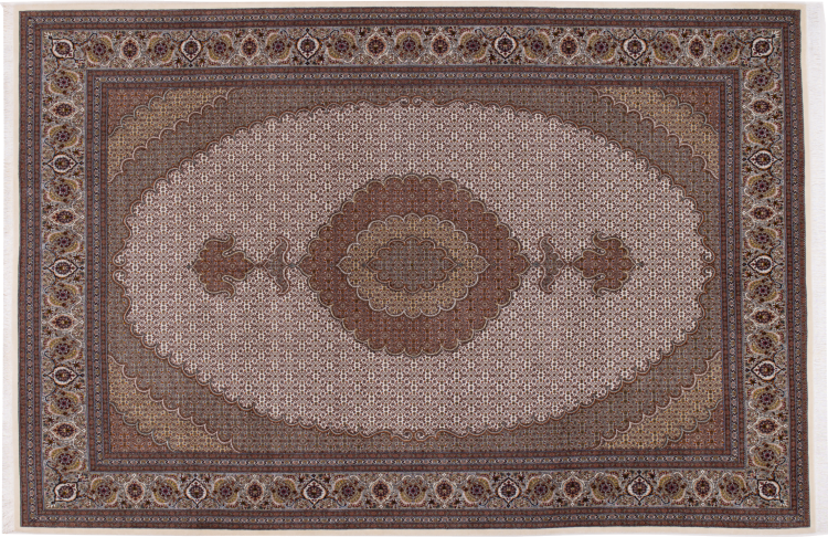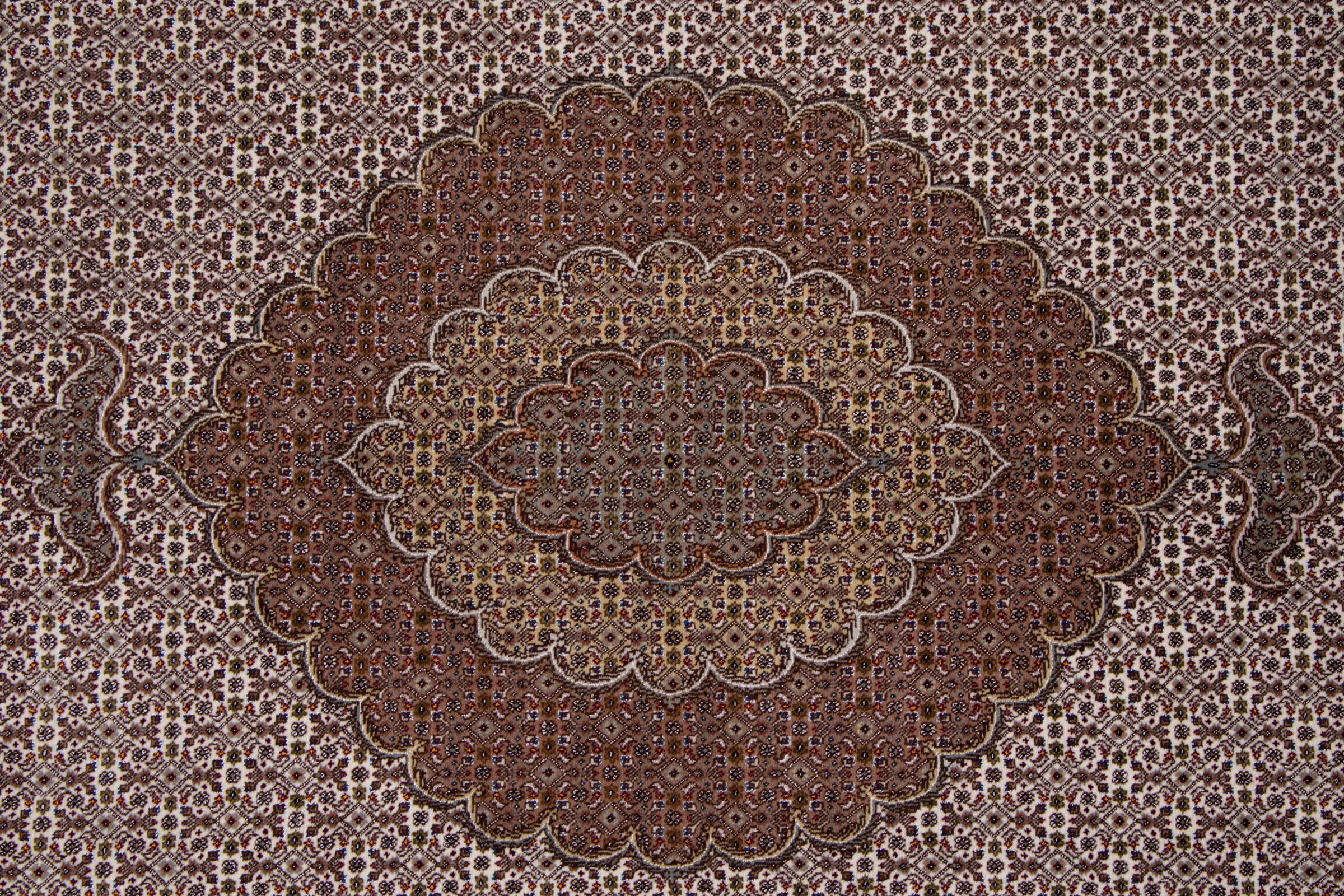 Teppenummer: 293135003036480 Størrelse: 303x199 cm Tykkelse: ca. 7 mm Knuter: 440 000 - 490 000 / m² Bearbeiding: Knyttet for hånd Søm: Ull med silke Kjede: Bomull Opprinnelse: Persia / Iran Alder: Nytt Vekt: ca. 18 kg Også kjent som Tabriz, Tabris, Täbris, Tebriz, Tebris, 40Raj, 50Raj Antall på lager: Unikt - Kun 1 stk i lager