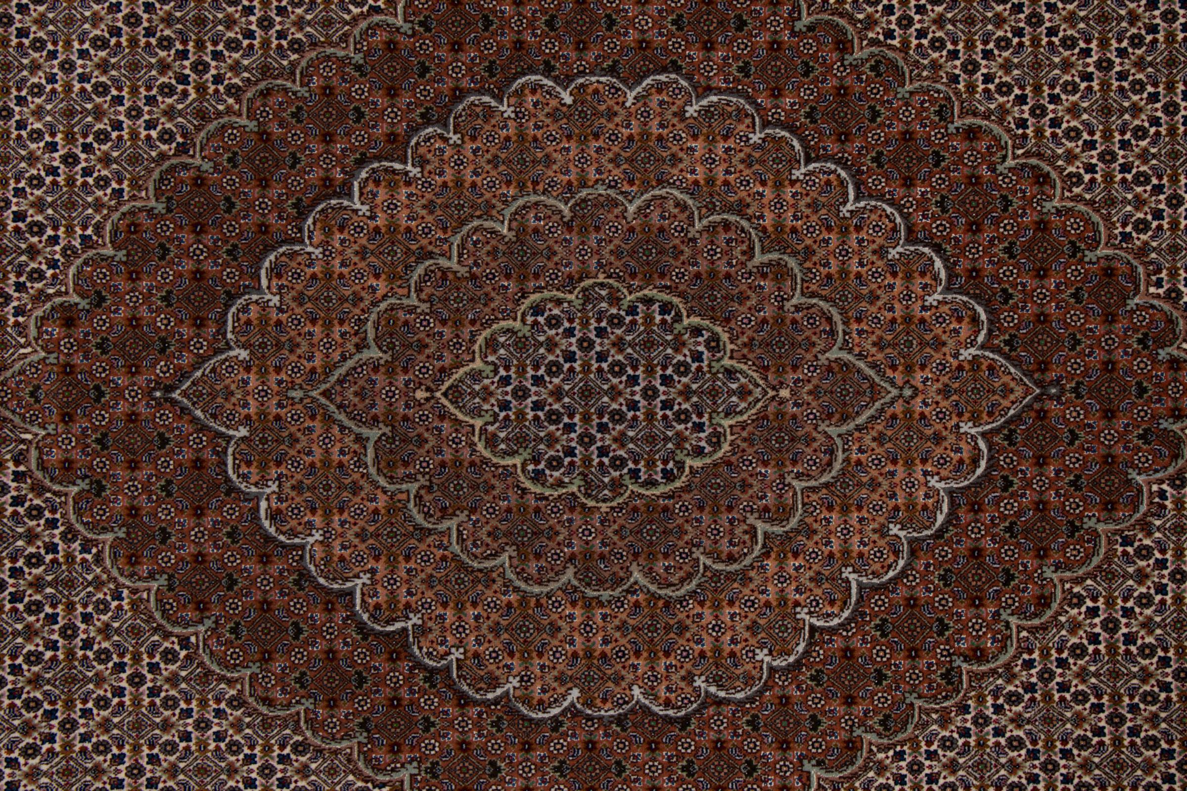 Teppenummer: 293807005532729 Størrelse: 351x244 cm Tykkelse: ca. 7 mm Knuter: 440 000 - 490 000 / m² Bearbeiding: Knyttet for hånd Søm: Ull med silke Kjede: Bomull Opprinnelse: Persia / Iran Alder: Nytt Vekt: ca. 26 kg Også kjent som Tabriz, Tabris, Täbris, Tebriz, Tebris, 40Raj, 50Raj Antall på lager: Unikt - Kun 1 stk i lager