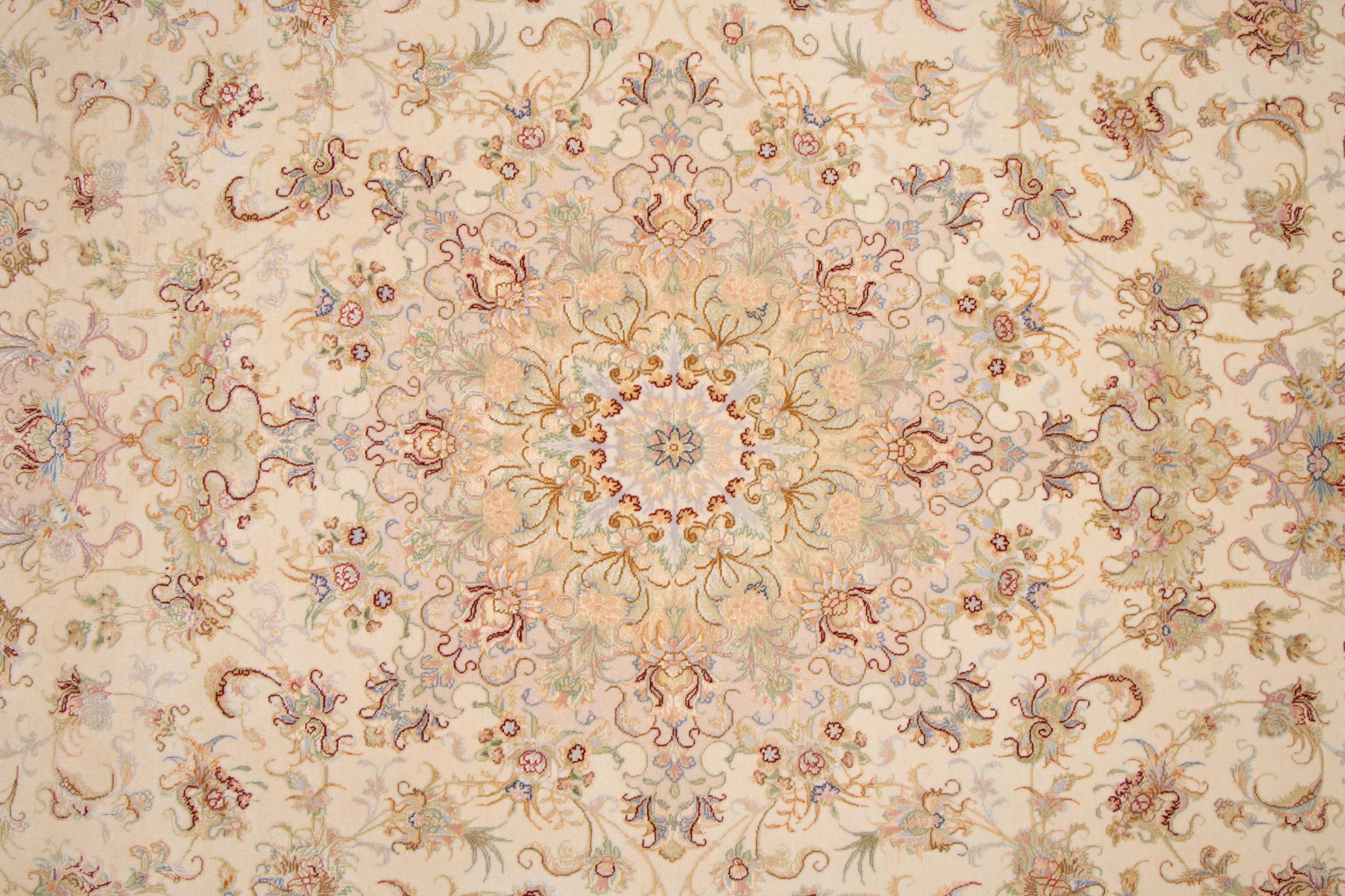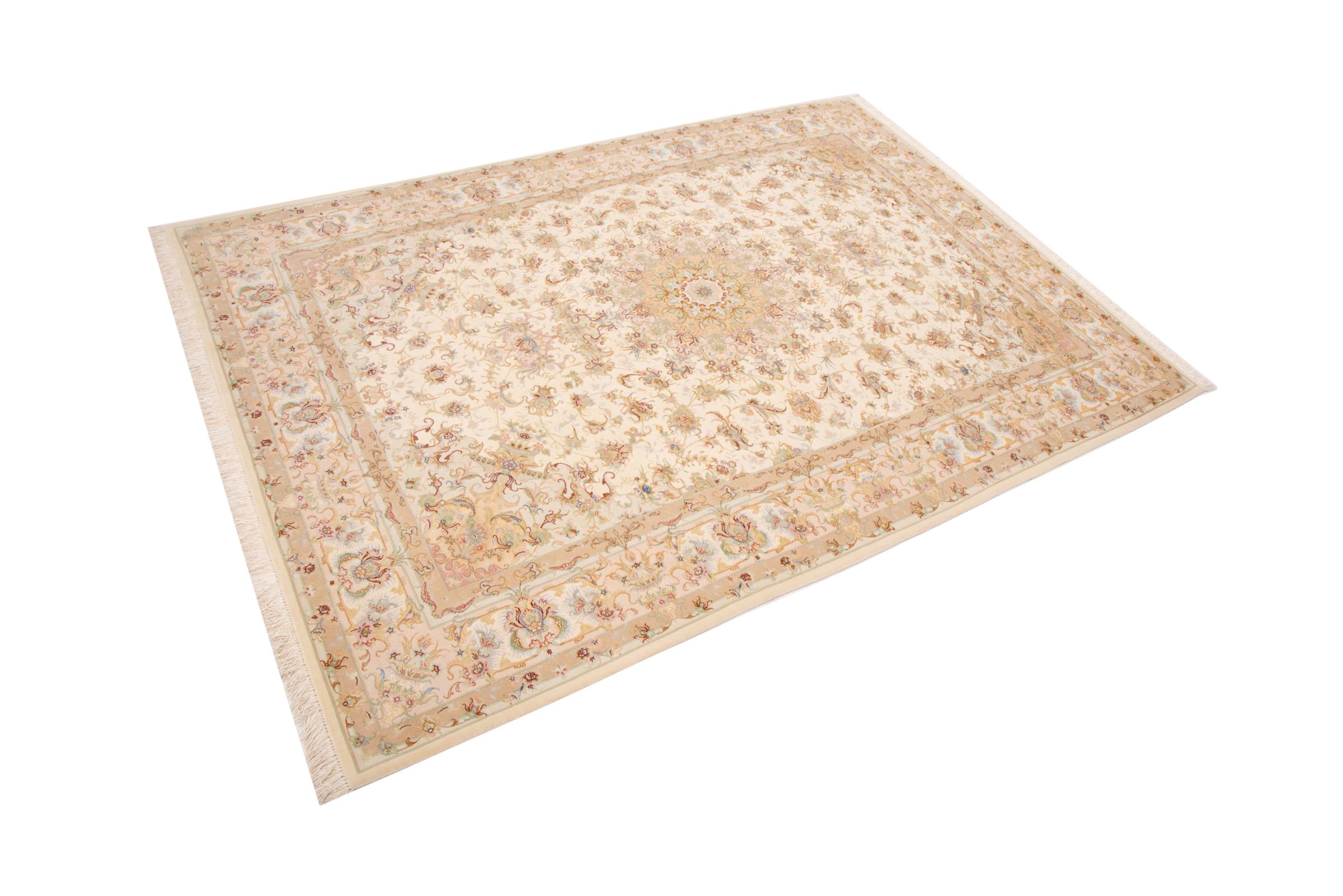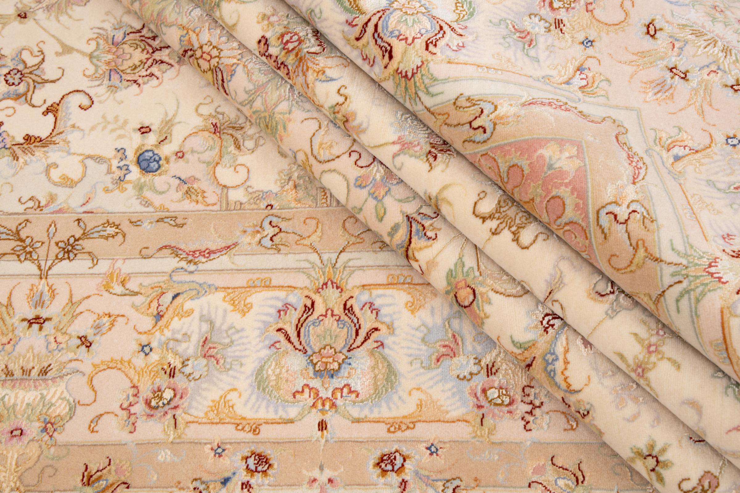 Teppenummer: 292967005811346 Størrelse: 299x196 cm Tykkelse: ca. 7 mm Knuter: 440 000 - 490 000 / m² Bearbeiding: Knyttet for hånd Søm: Ull med silke Kjede: Silke Opprinnelse: Persia / Iran Alder: Nytt Vekt: ca. 18 kg Også kjent som Tabriz, Tabris, Täbris, Tebriz, Tebris, 40Raj, 50Raj Antall på lager: Unikt - Kun 1 stk i lager