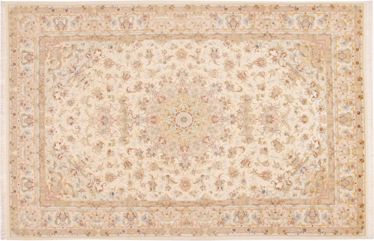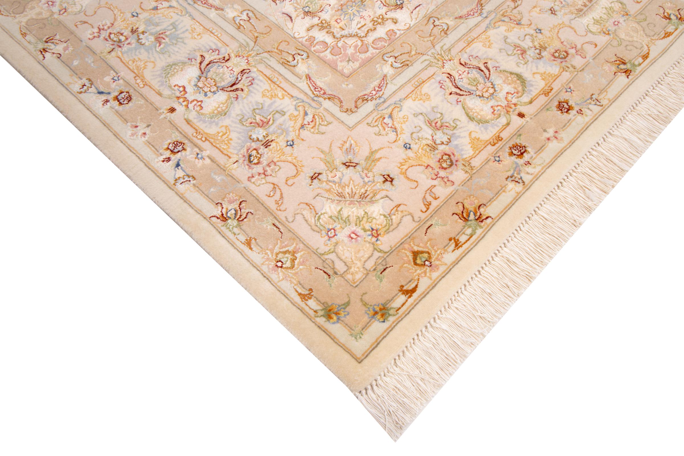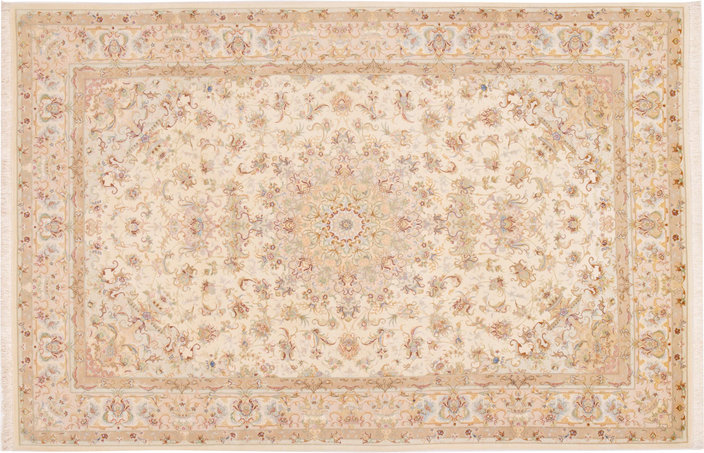 Teppenummer: 292967005811346 Størrelse: 299x196 cm Tykkelse: ca. 7 mm Knuter: 440 000 - 490 000 / m² Bearbeiding: Knyttet for hånd Søm: Ull med silke Kjede: Silke Opprinnelse: Persia / Iran Alder: Nytt Vekt: ca. 18 kg Også kjent som Tabriz, Tabris, Täbris, Tebriz, Tebris, 40Raj, 50Raj Antall på lager: Unikt - Kun 1 stk i lager