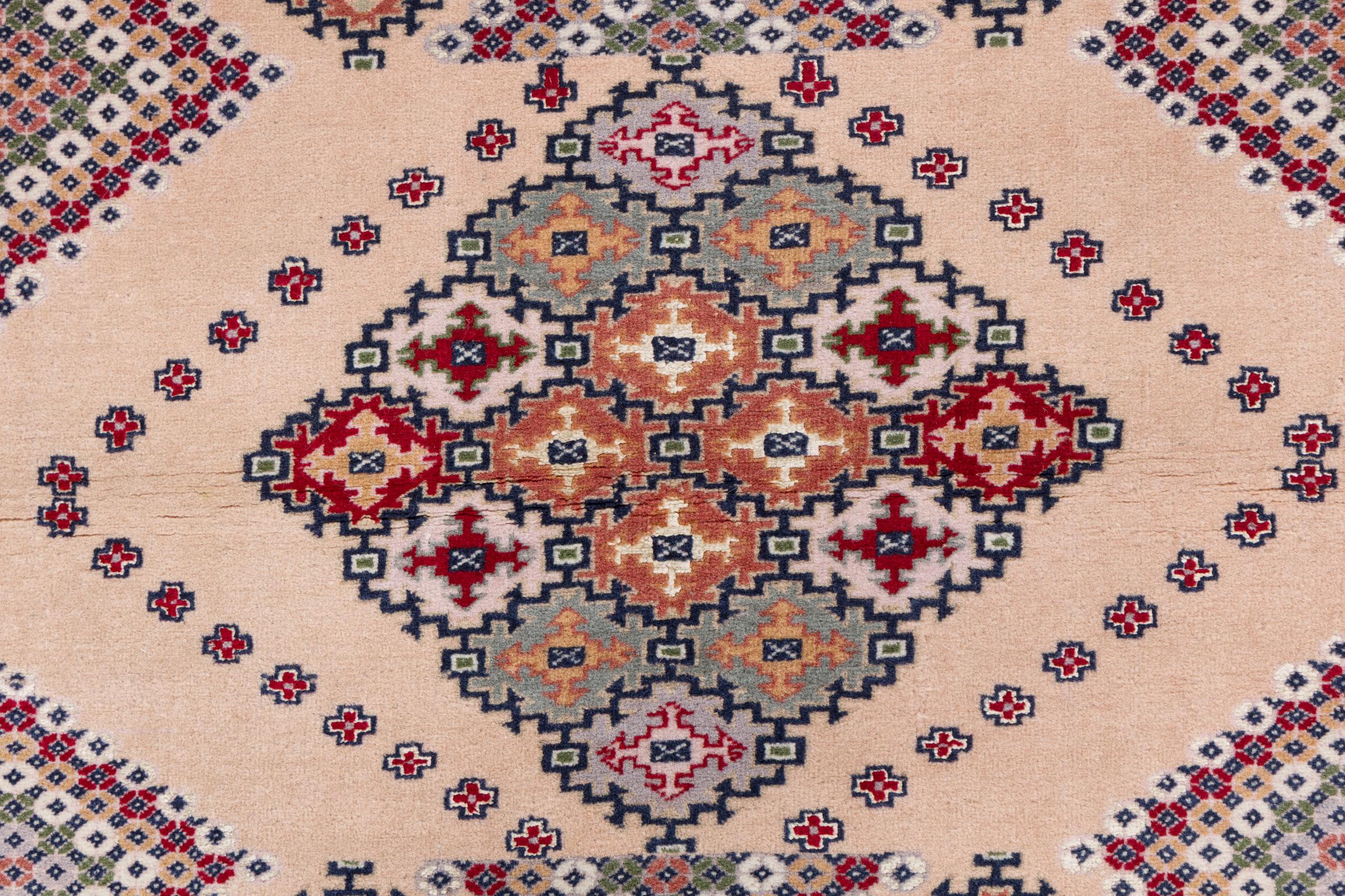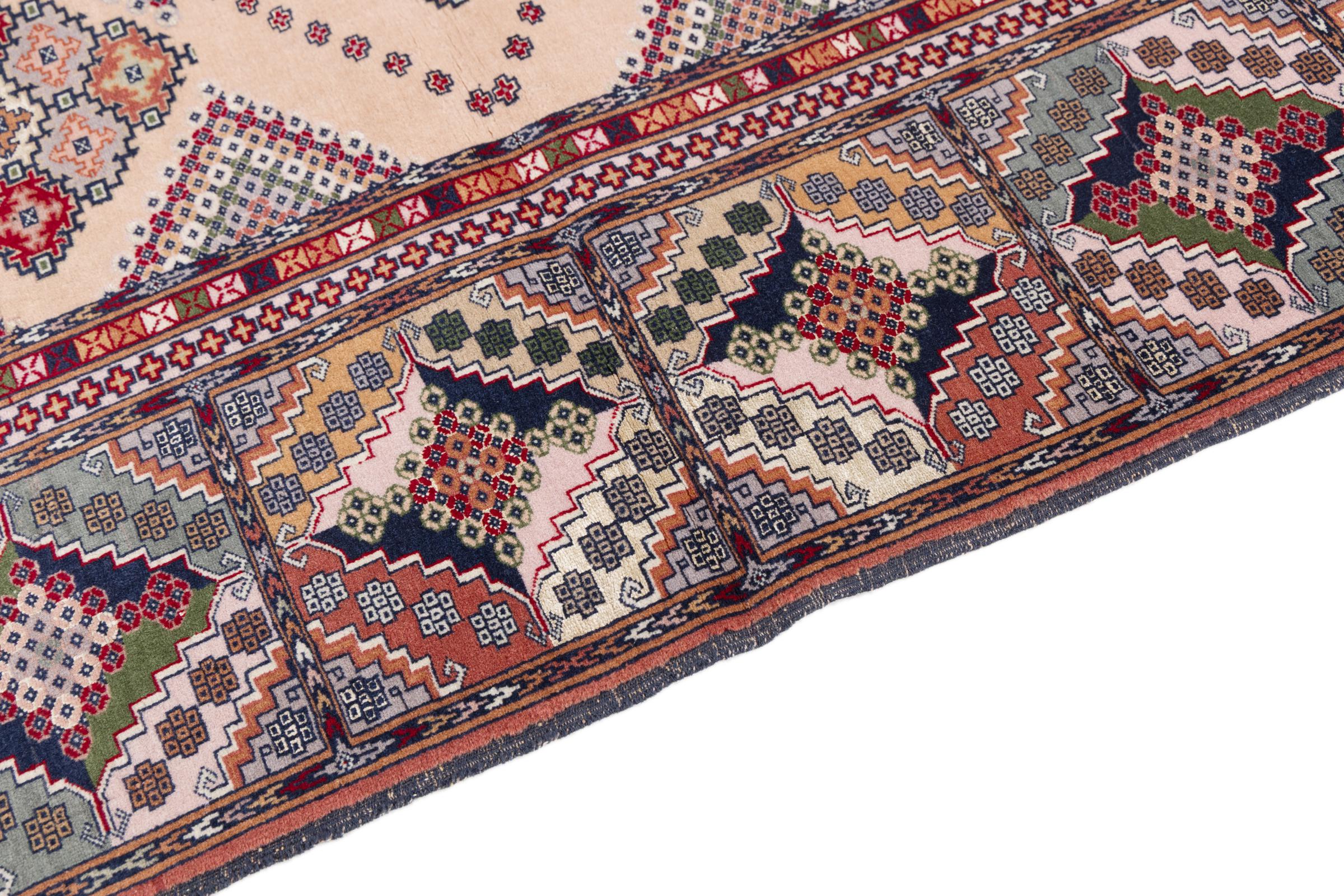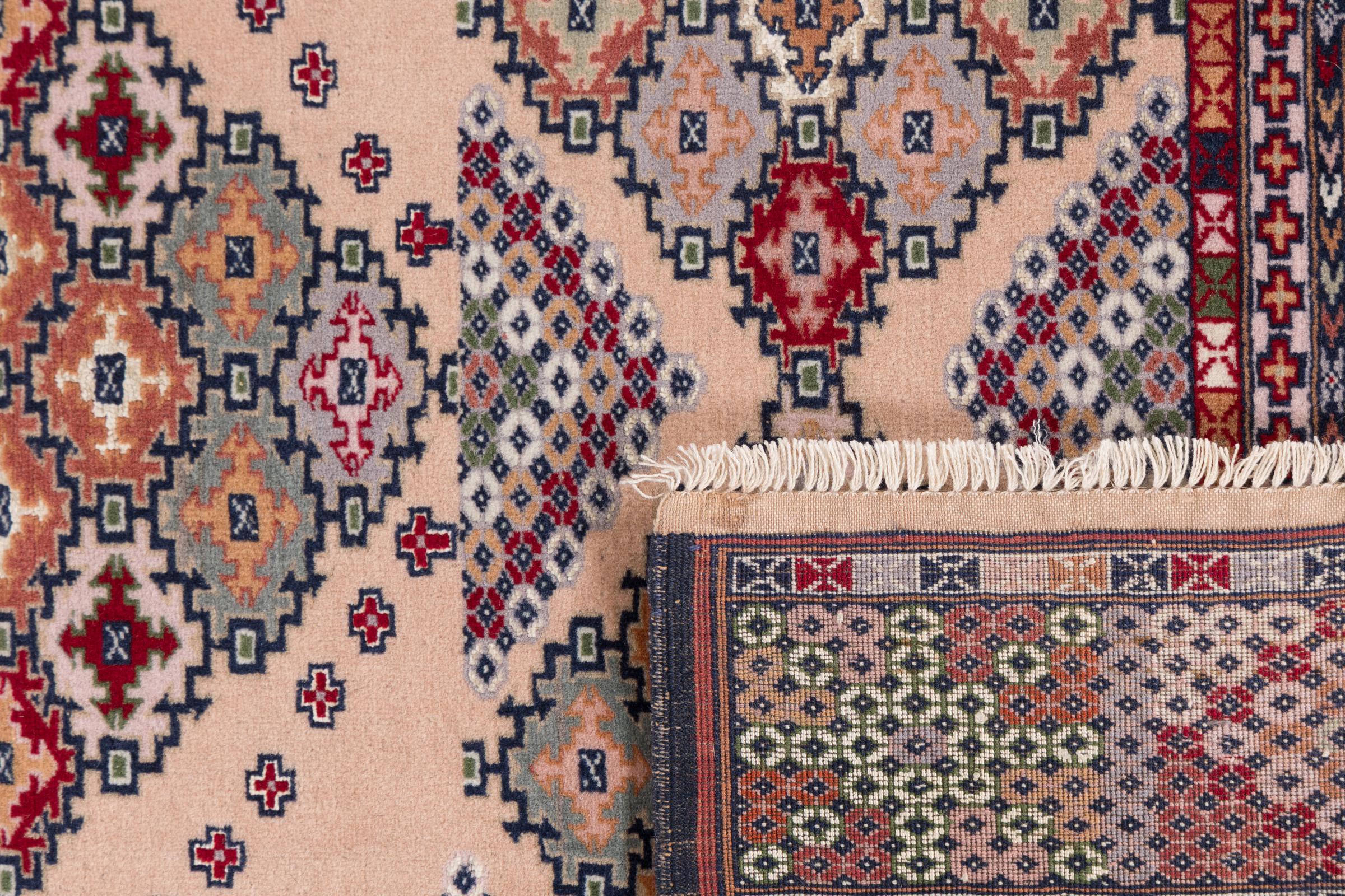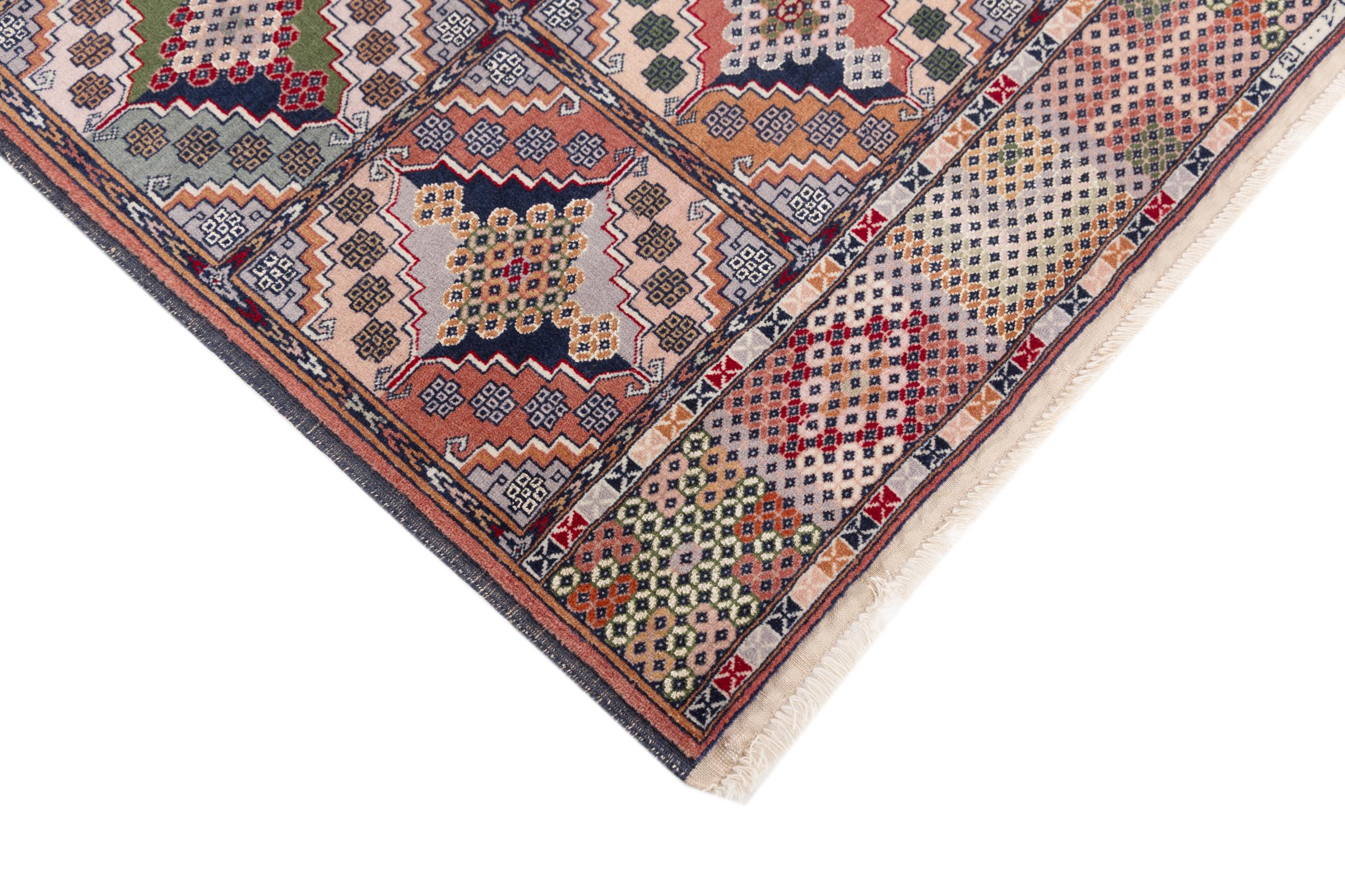 Dette turkman teppet er laget med fineste håndarbeite av flotteste ull. Fargene speiler kulturen fra turkmenerne og gir hjemmet ditt et lite stykke av orienten.