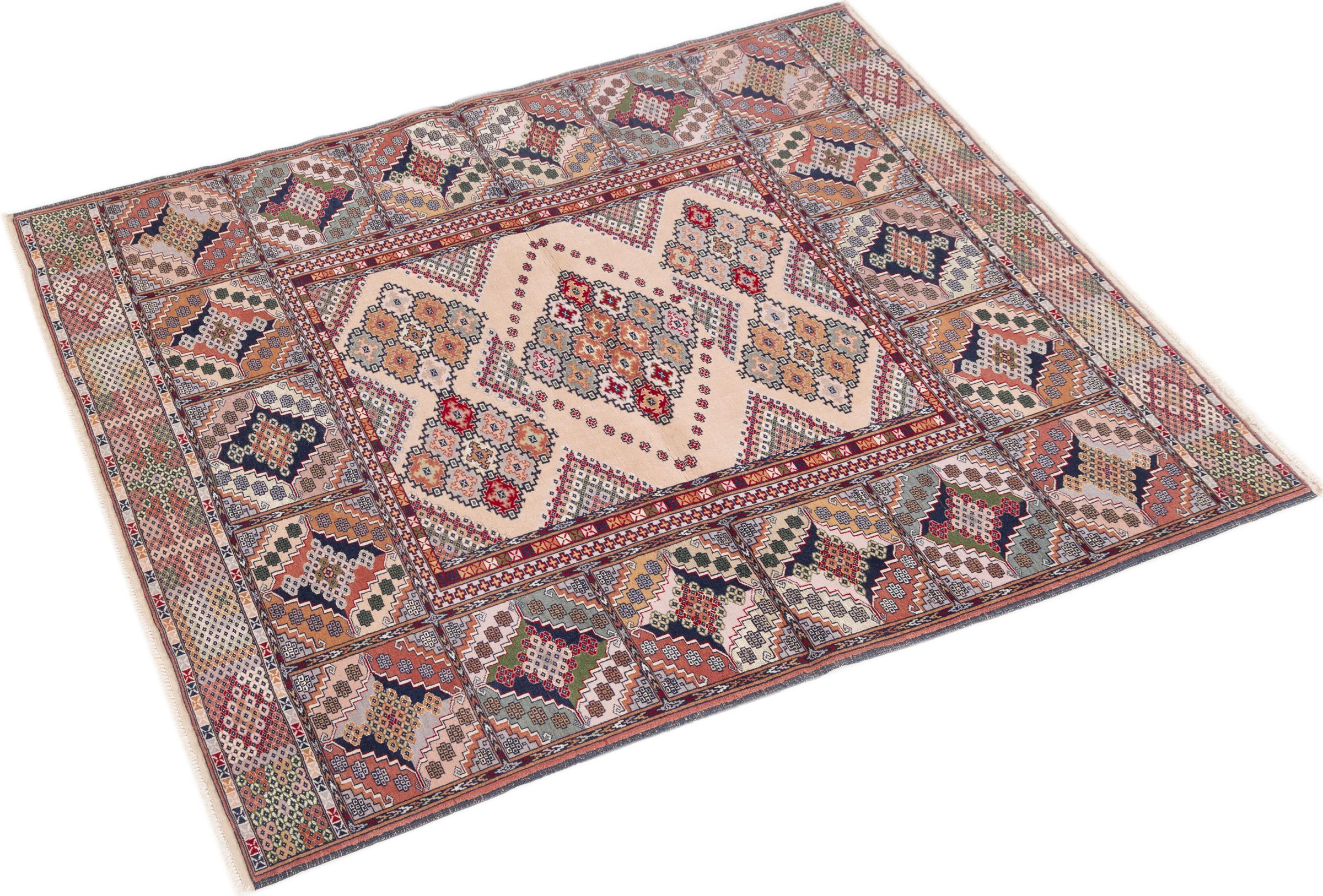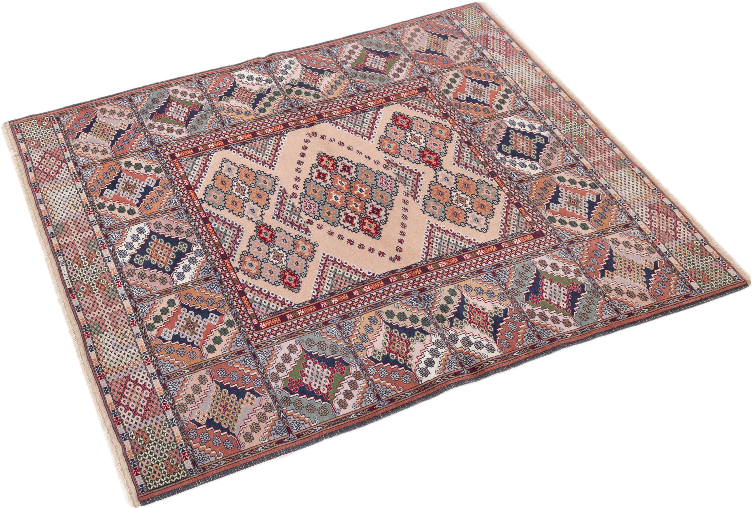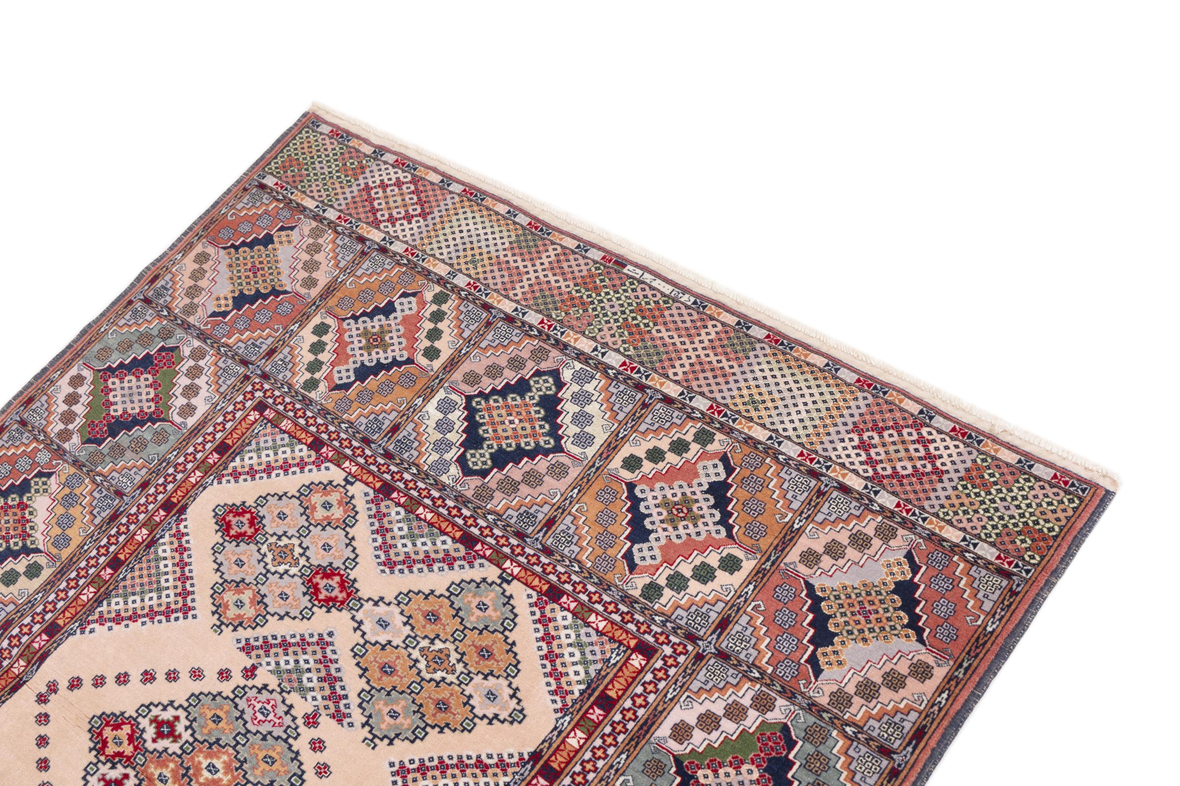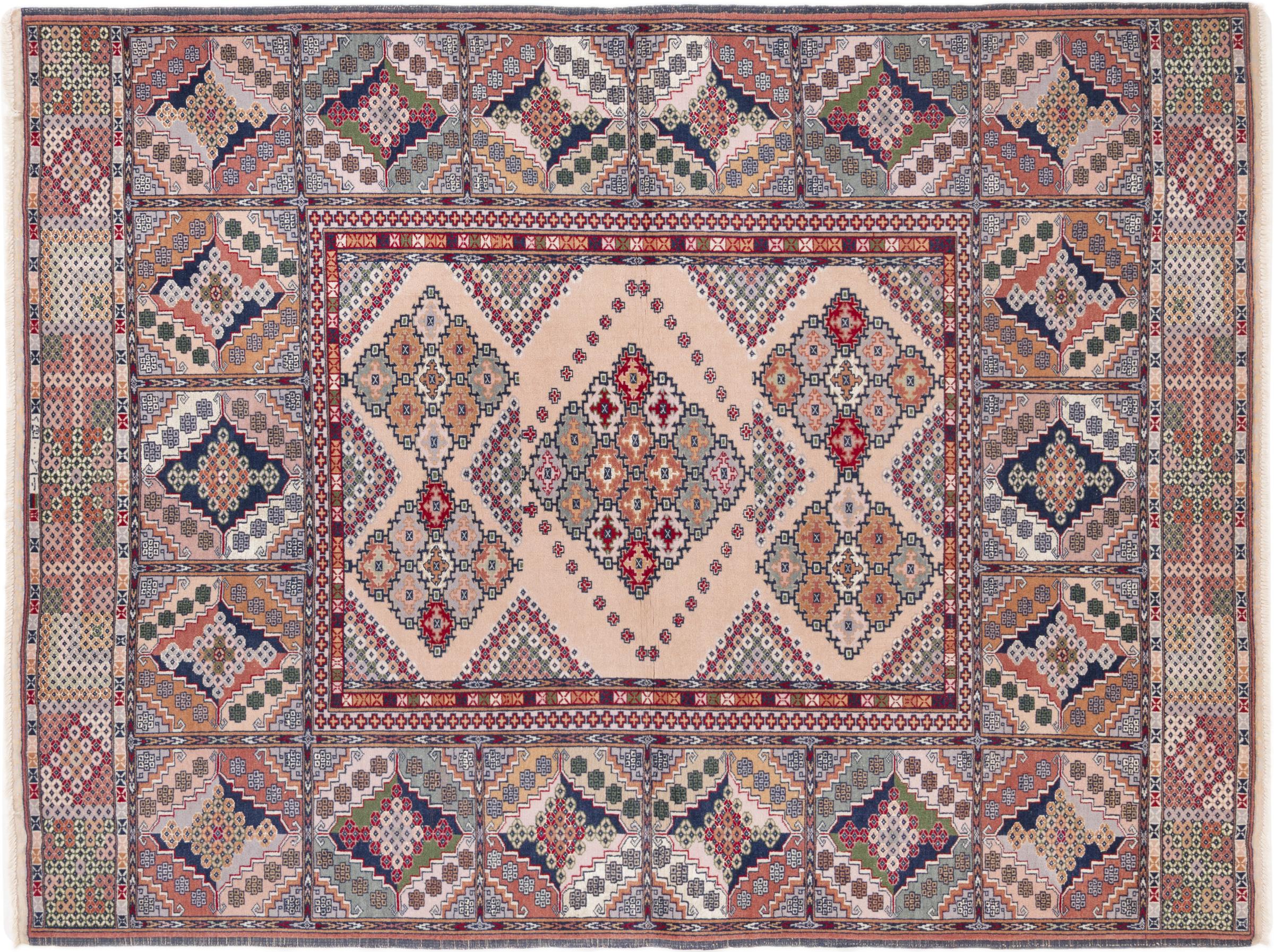 Dette turkman teppet er laget med fineste håndarbeite av flotteste ull. Fargene speiler kulturen fra turkmenerne og gir hjemmet ditt et lite stykke av orienten.
