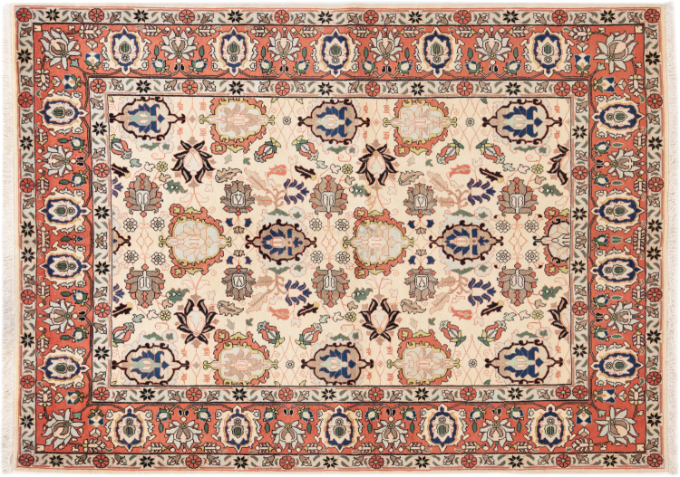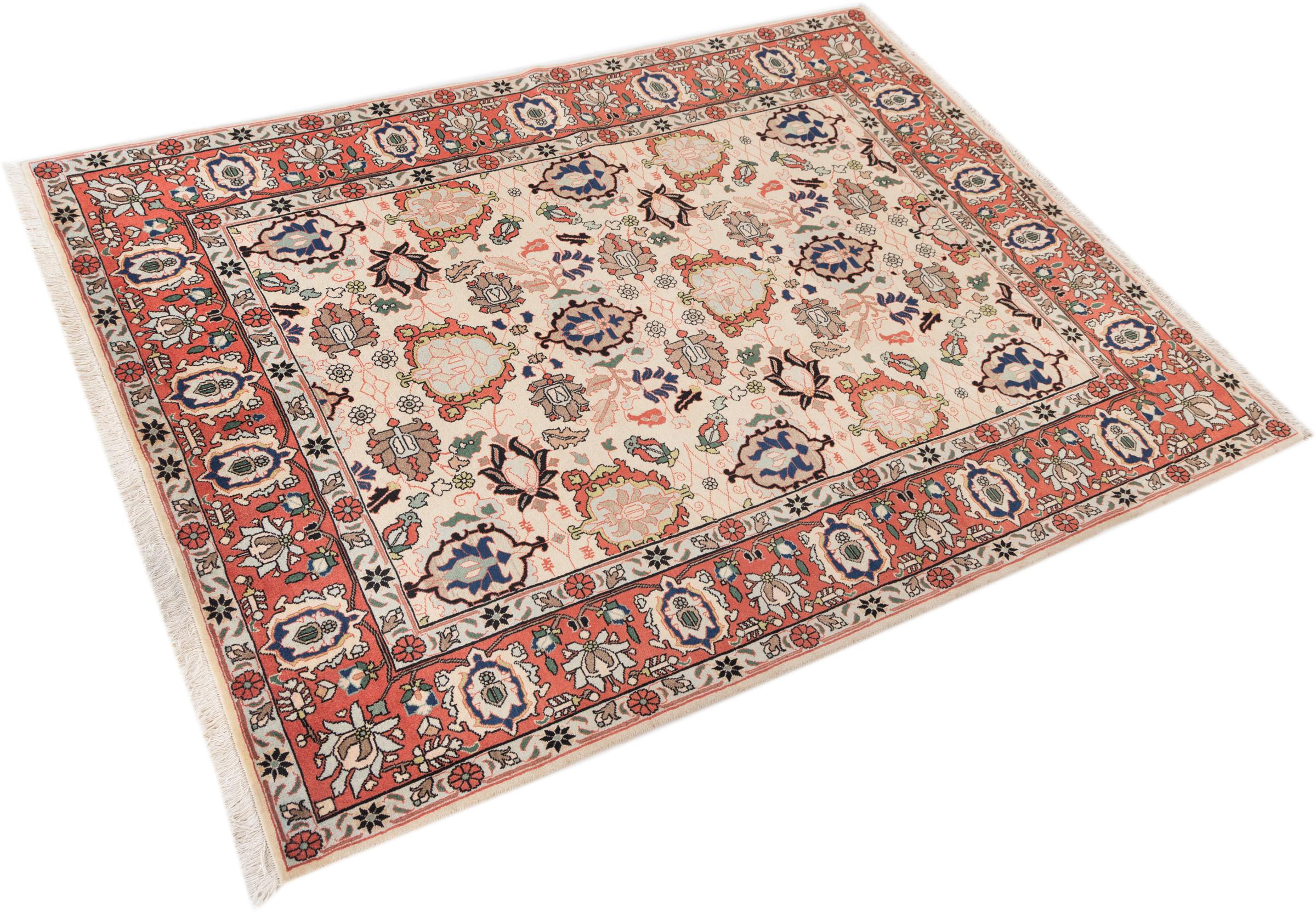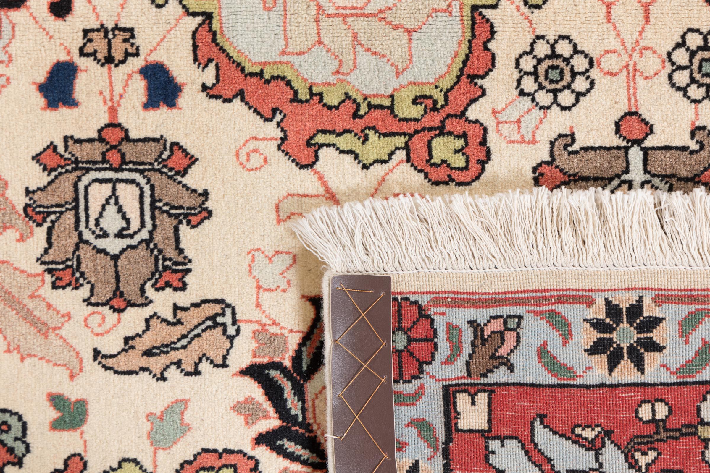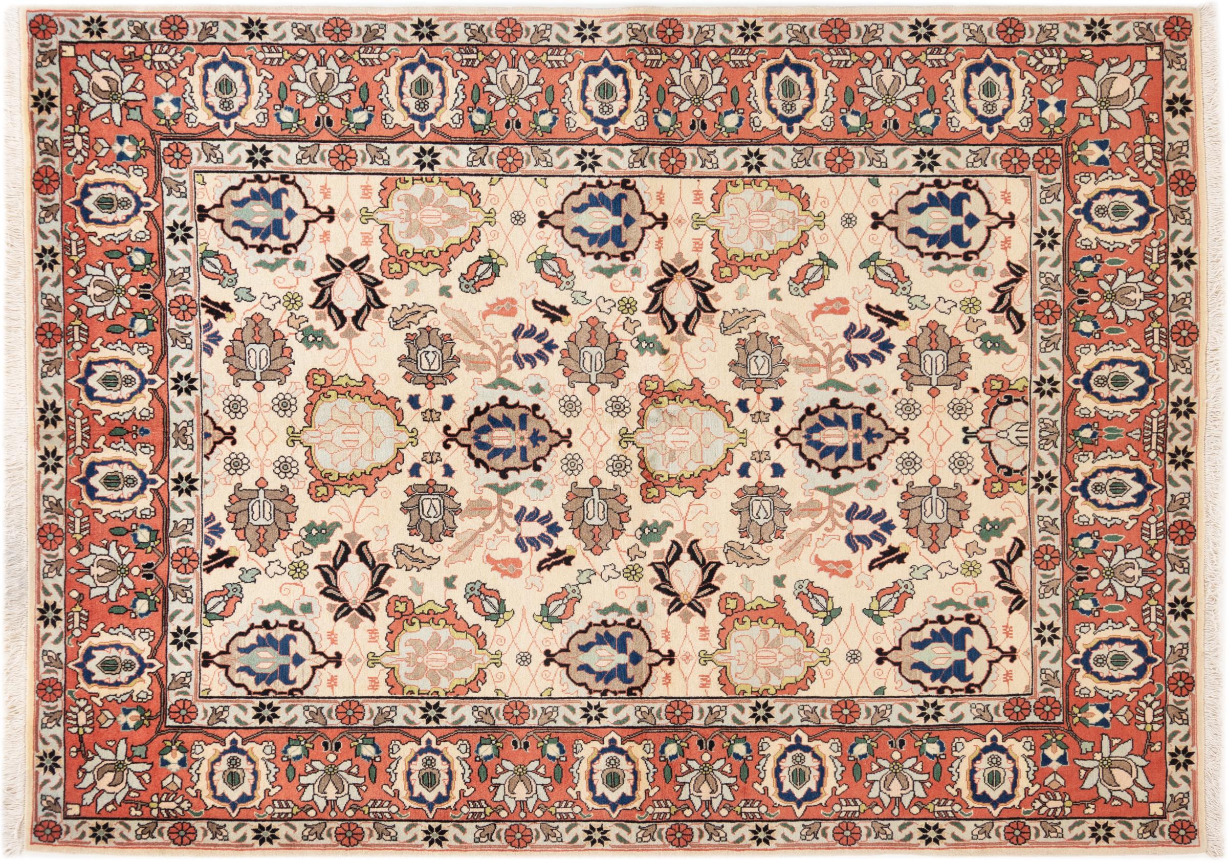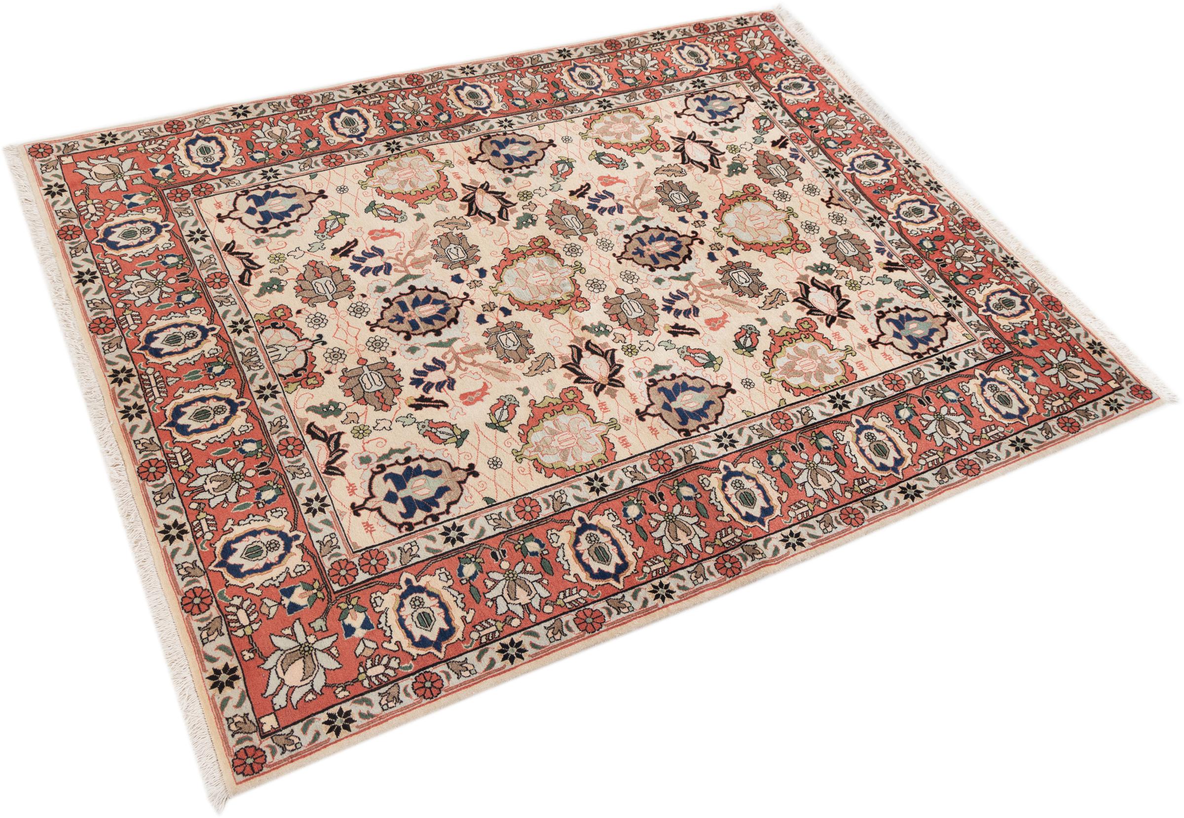 Et flott eksemplar persisk håndarbeid. Dette håndknyttede persiske teppet lar pulsen slo raskere. Det ble håndknyttet i byen Varamin. Nøl ikke, du vil blir begeistret av synet på dette teppet.