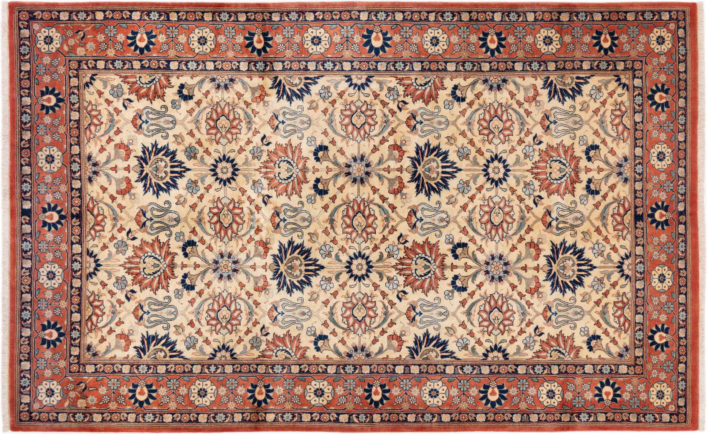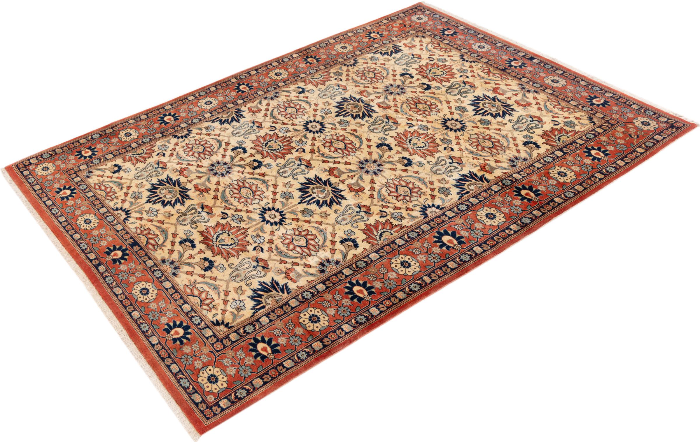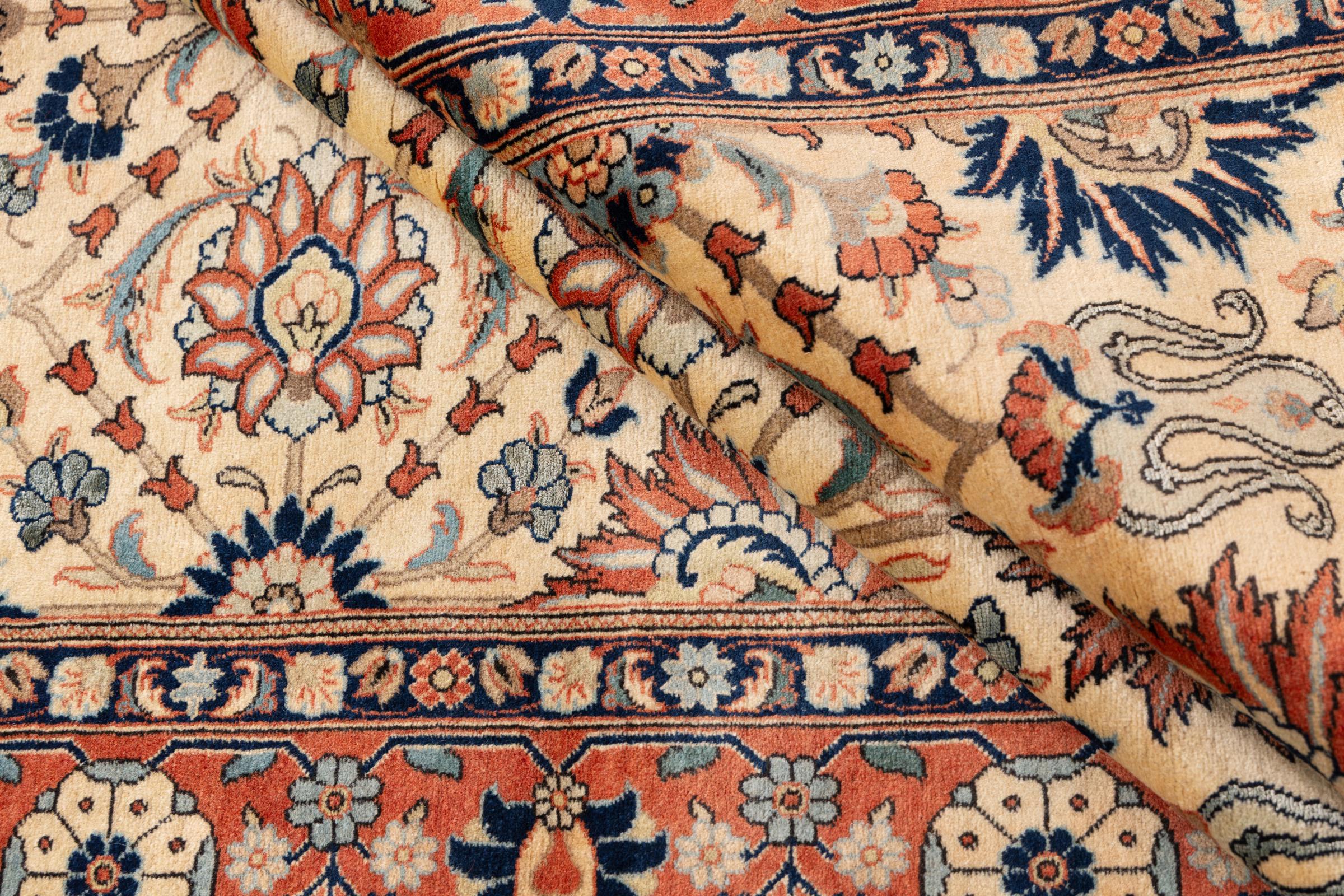 Et flott eksemplar persisk håndarbeid. Dette håndknyttede persiske teppet lar pulsen slo raskere. Det ble håndknyttet i byen Varamin. Nøl ikke, du vil blir begeistret av synet på dette teppet.