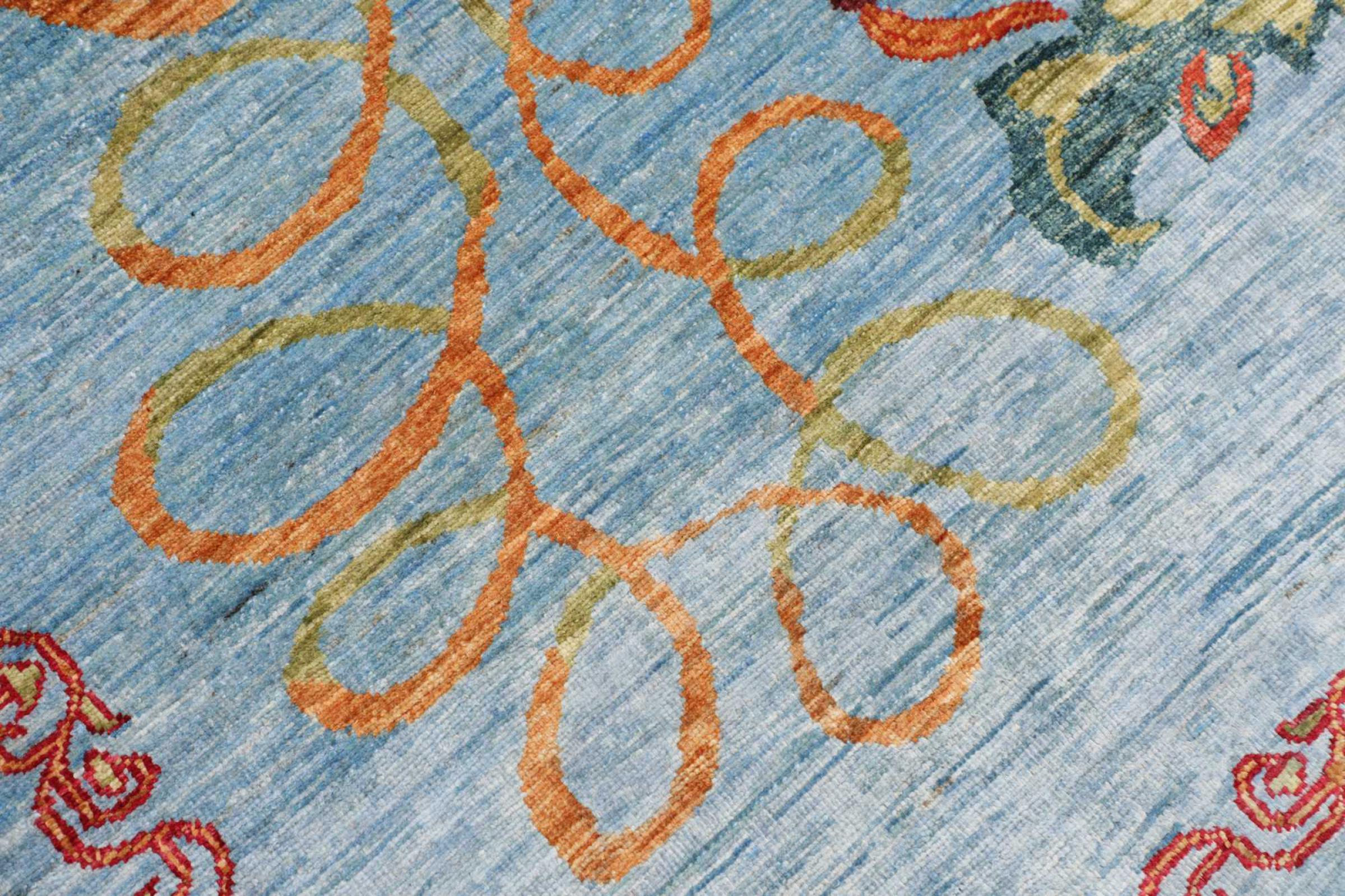Dette moderne Ziegler teppet ble håndknyttet i Pakistan i moderne farger og mønster og vet å begeistre. Legg teppet der du ønsker det og opplev hvordan rommet fylles av moderne design.