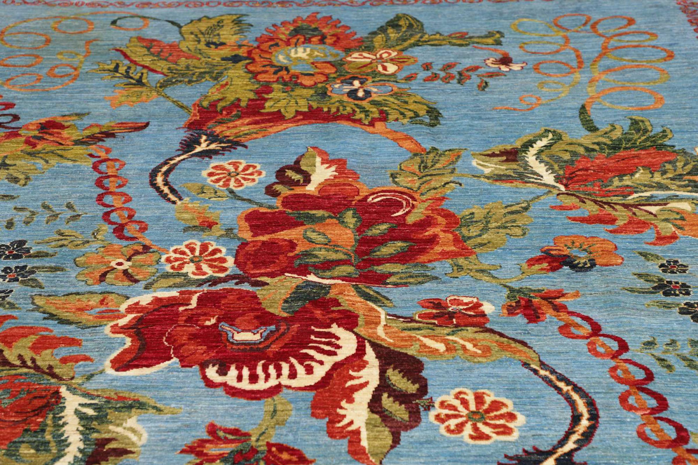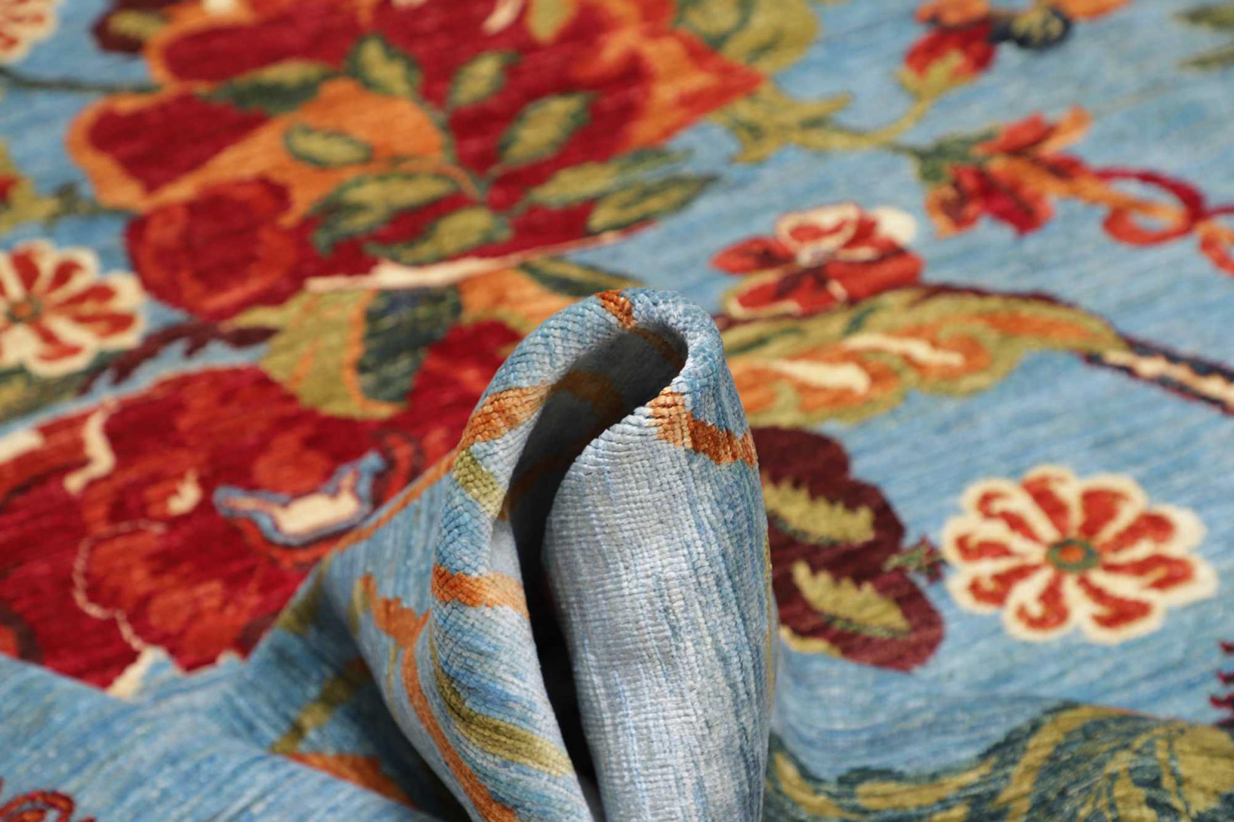 Dette teppet består av håndspunnet saueull av høyeste kvalitet. Spesielt i Iran (tidligere Persia), Afghanistan og Pakistan blir ull spunnet for hånd før teppet faktisk er knyttet. Ull har bevist seg som et naturlig og ekstremt slitesterkt materiale gjennom århundrer. Blant annet har den smussavvisende og varmeisolerende egenskaper. Samtidig er ull uten sammenligning myk og fører med seg en naturlig glans.